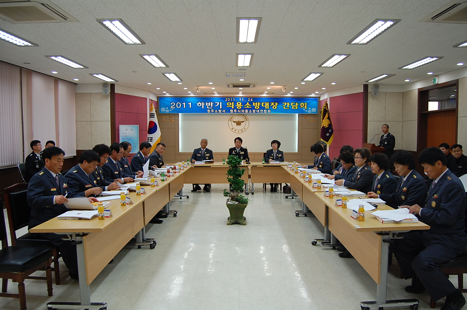 원주소방서(서장. 김시균)는 2011.11.24(목) 15:00-19:00, 본서 대회의실 및 시중음식점에서 하반기 원주시의용소방대연합회 간담회를 개최하였습니다.