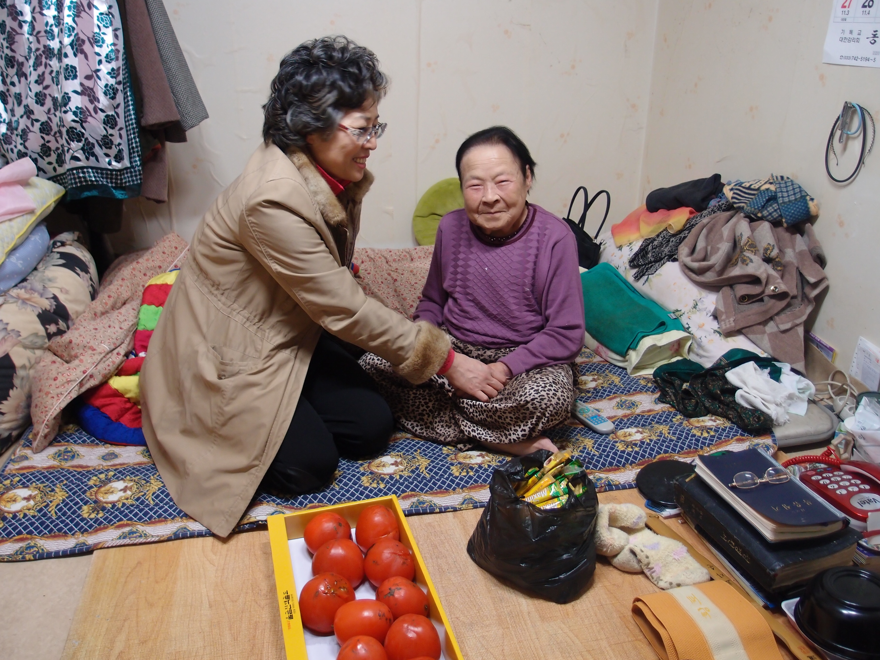 어른들이 좋와하시는 물렁한감과 커피를 준비하여 전달했습니다