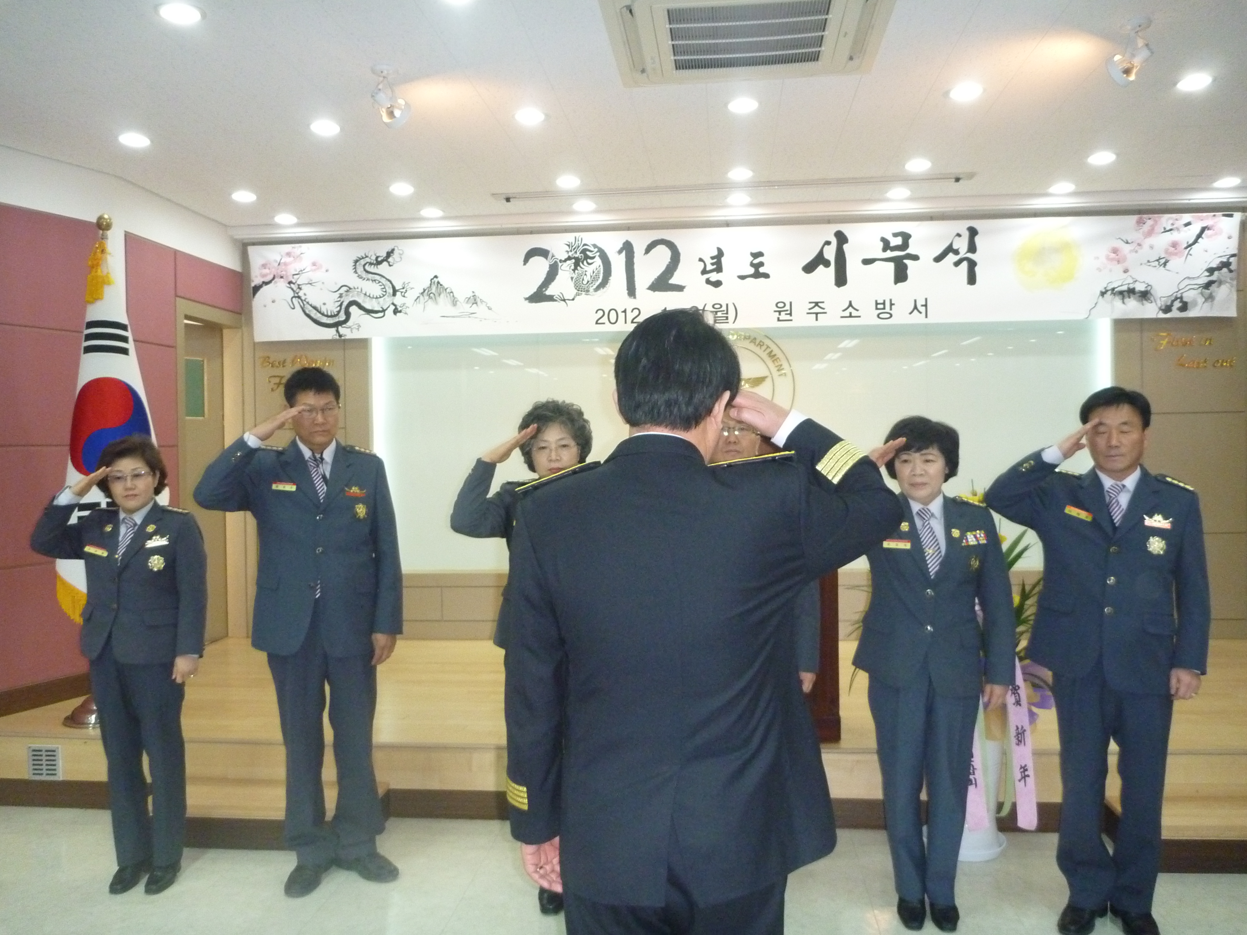 흥업여성대(오오석연합회장)이 1월2일 소방서에서 열리는 "2012년도 시무식"에 9:30~10:30까지 축하하기 위하여 참석하고 왔습니다.올해는 식전에 연합회 임원들의 위촉식을 거행하였습니다.많은 직원들 앞이라서 더 뿌뜻하며 자랑스럽고, 더 열심히 해야 겠다는 생각이 들었습니다.