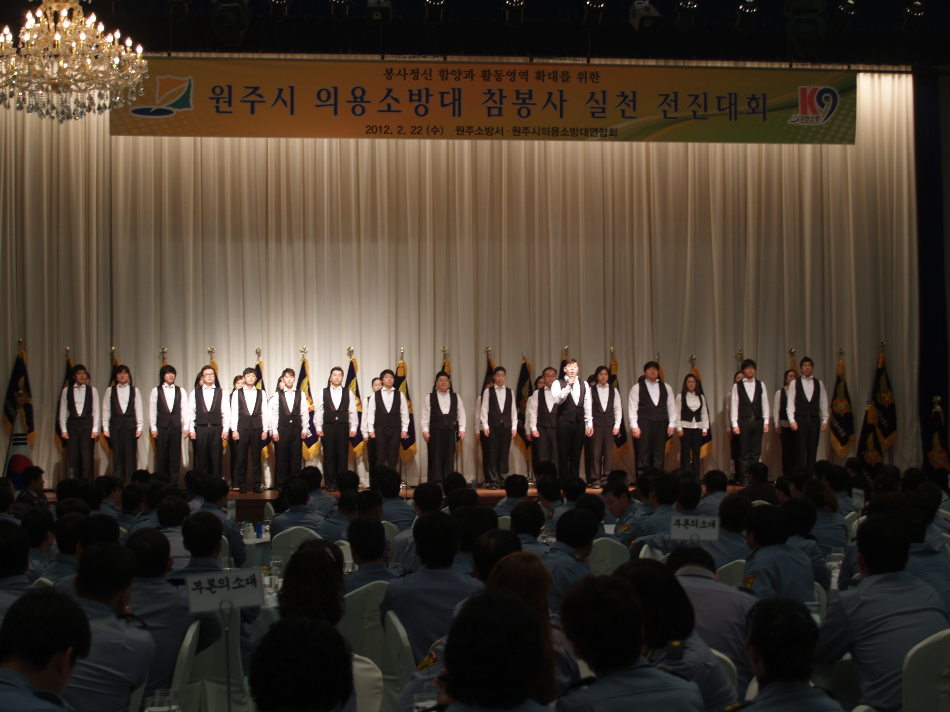 황둔의소대 대장김재희와 대원9명은 2월22일 10시에 인터불고호텔에서 열린 원주시의용소방대참봉사전진대회에 참석하였다. 2011년 우수대의 모범사례발표와 국정원에서의 방공교육, 원주시 원창묵시장의 2012년 시정의 들으며 의소대원으로서의 자부심과 자긍심을 가지는 계기가 되었다.