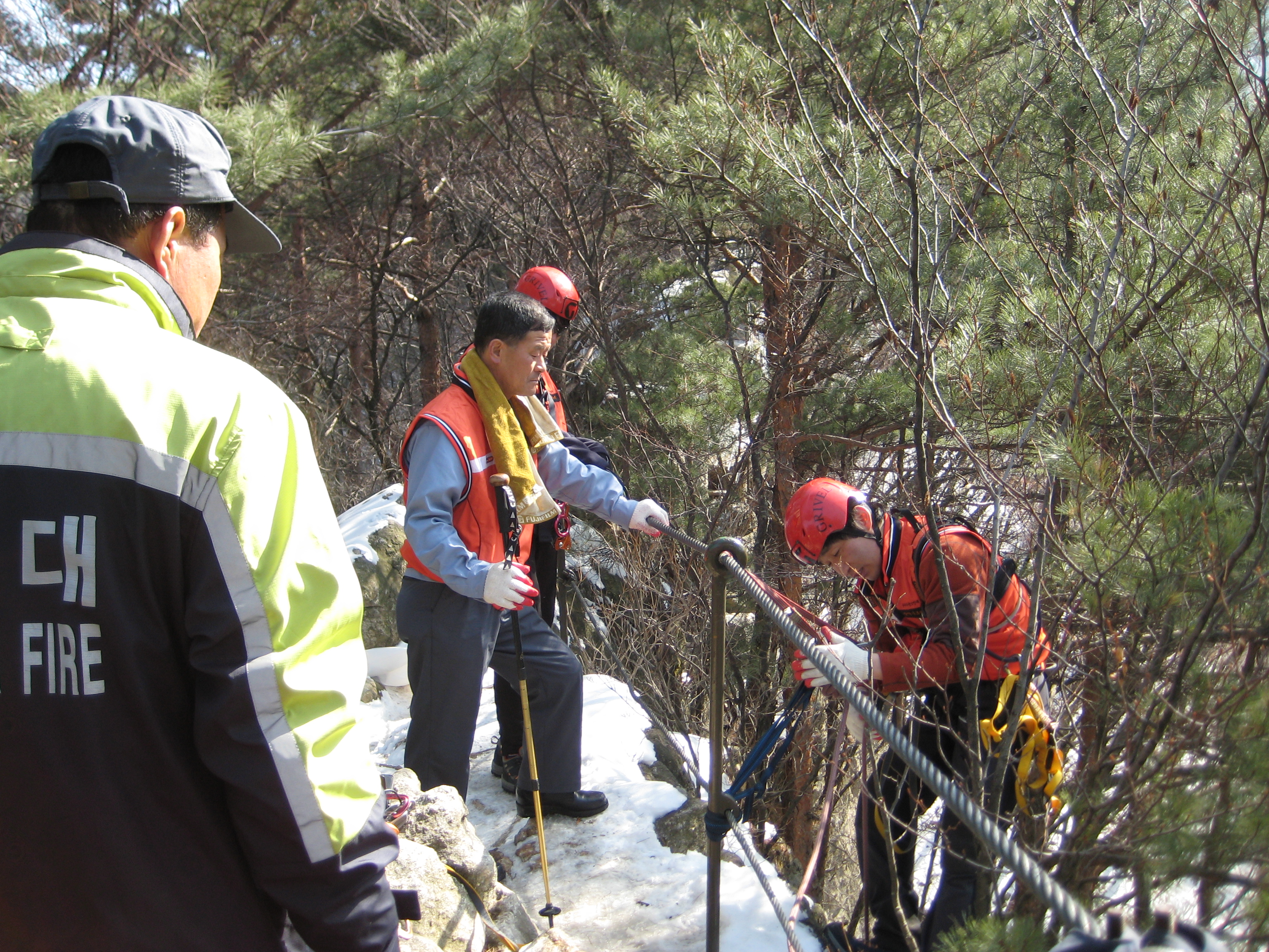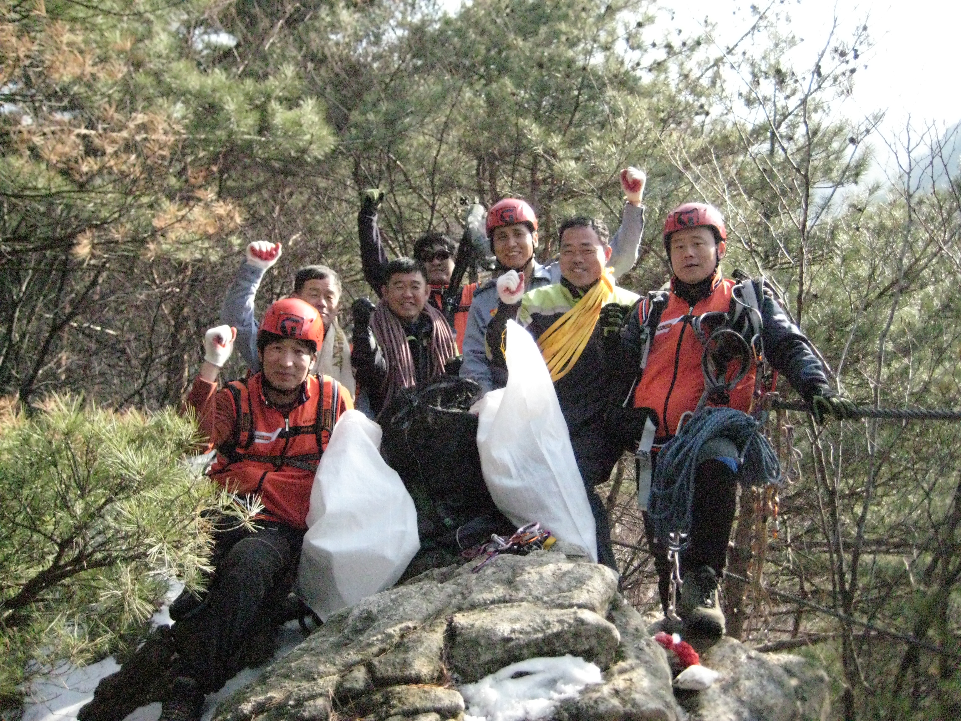 원주의용소방대(대장 조성일)는 3월15일 13:00-18:00까지 구급구조반,훈련반대원(산악구조반)11명이 참가하여 치악산 사다리병창 지역에서 등산객이 절벽아래에 떨어뜨린 쓰레기를 자일을 이용, 하강하여 쓰레기 70L를 수거했습니다