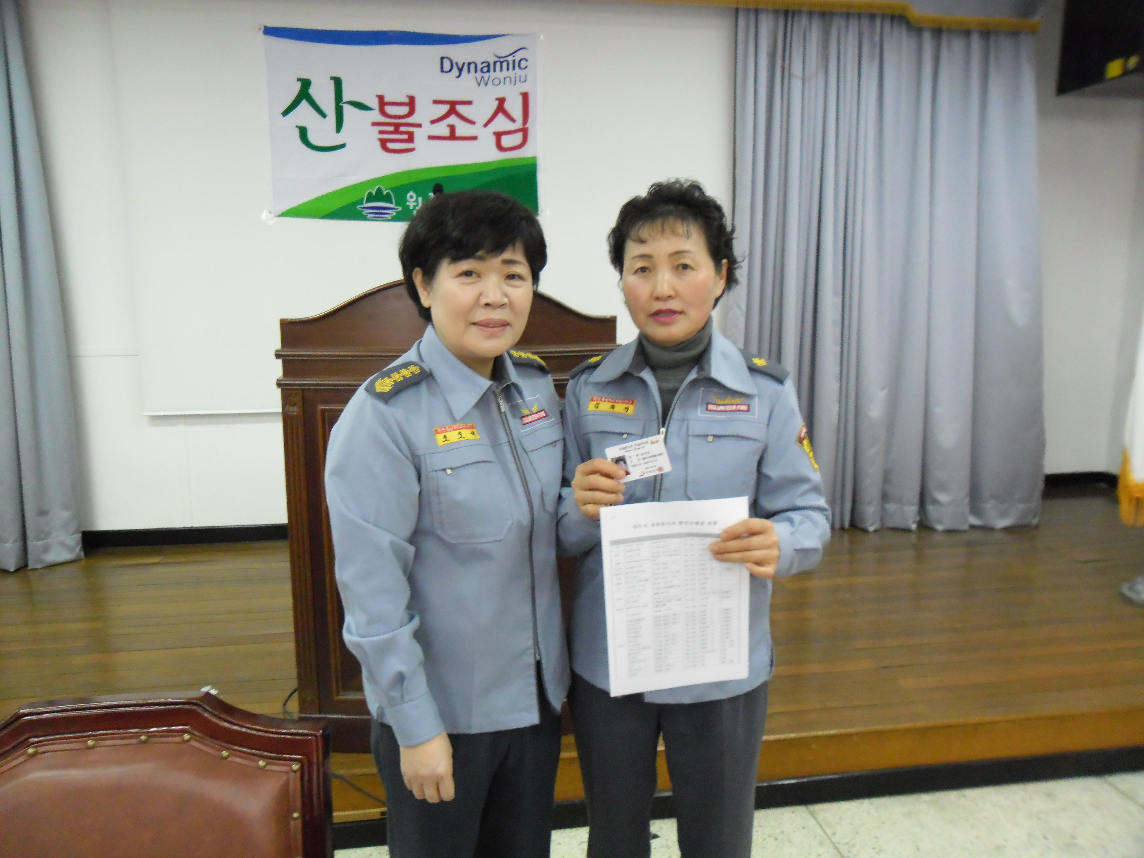 자체교육 시간에는 고3 자녀를 둔 대원(피미숙반장외 2명)들에게 장학금을 지급하는 시간과 일정시간동안 꾸준히 봉사를 해 온 대원(안성희구호부장외 5명)들에게 자원봉사센터에서 발급 받은 자원봉사자 마일리지증을 전달했답니다.