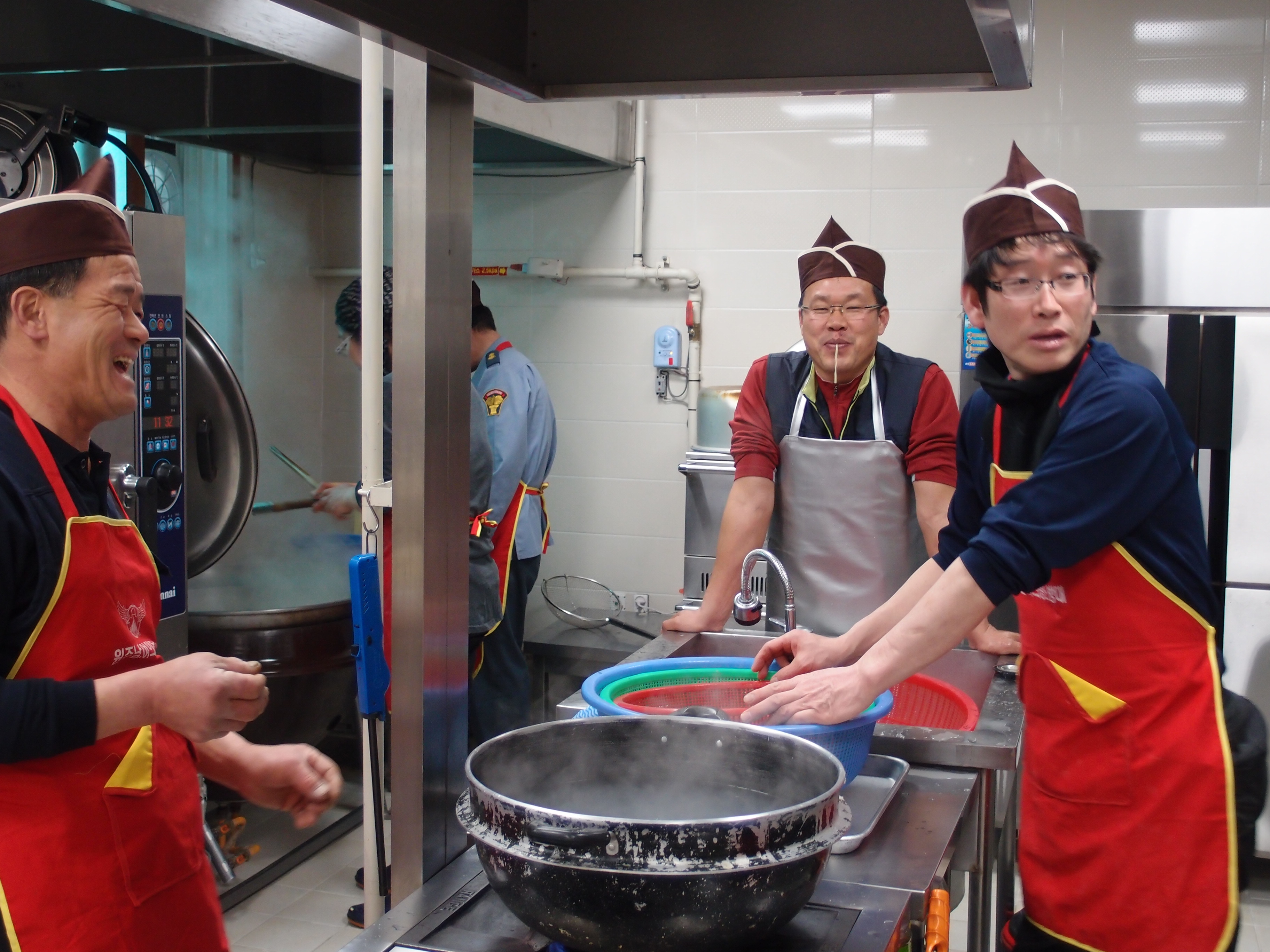 직원들과 목욕봉사나온 공익요원 그리고 우리 남,여 의소대 합170그릇을