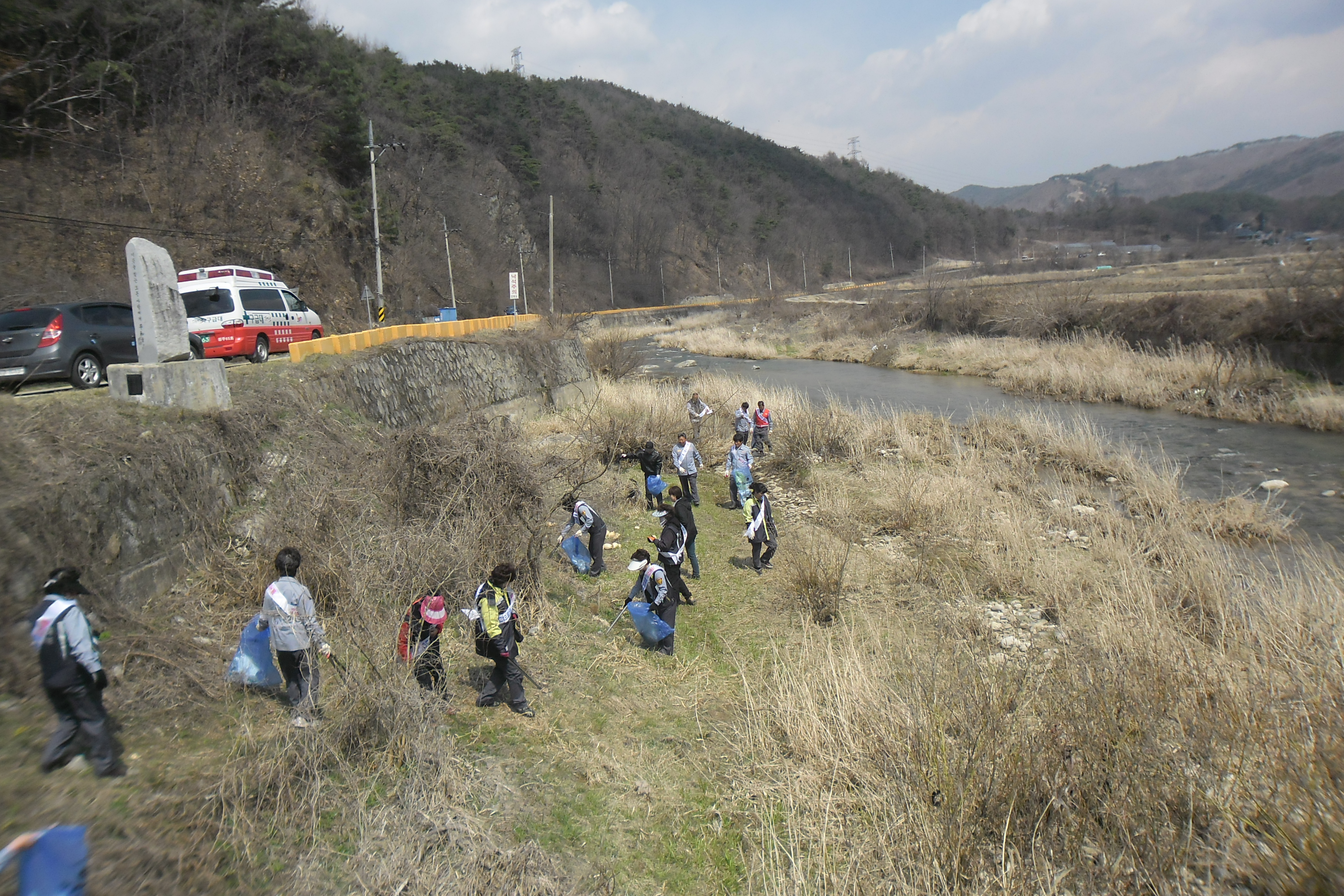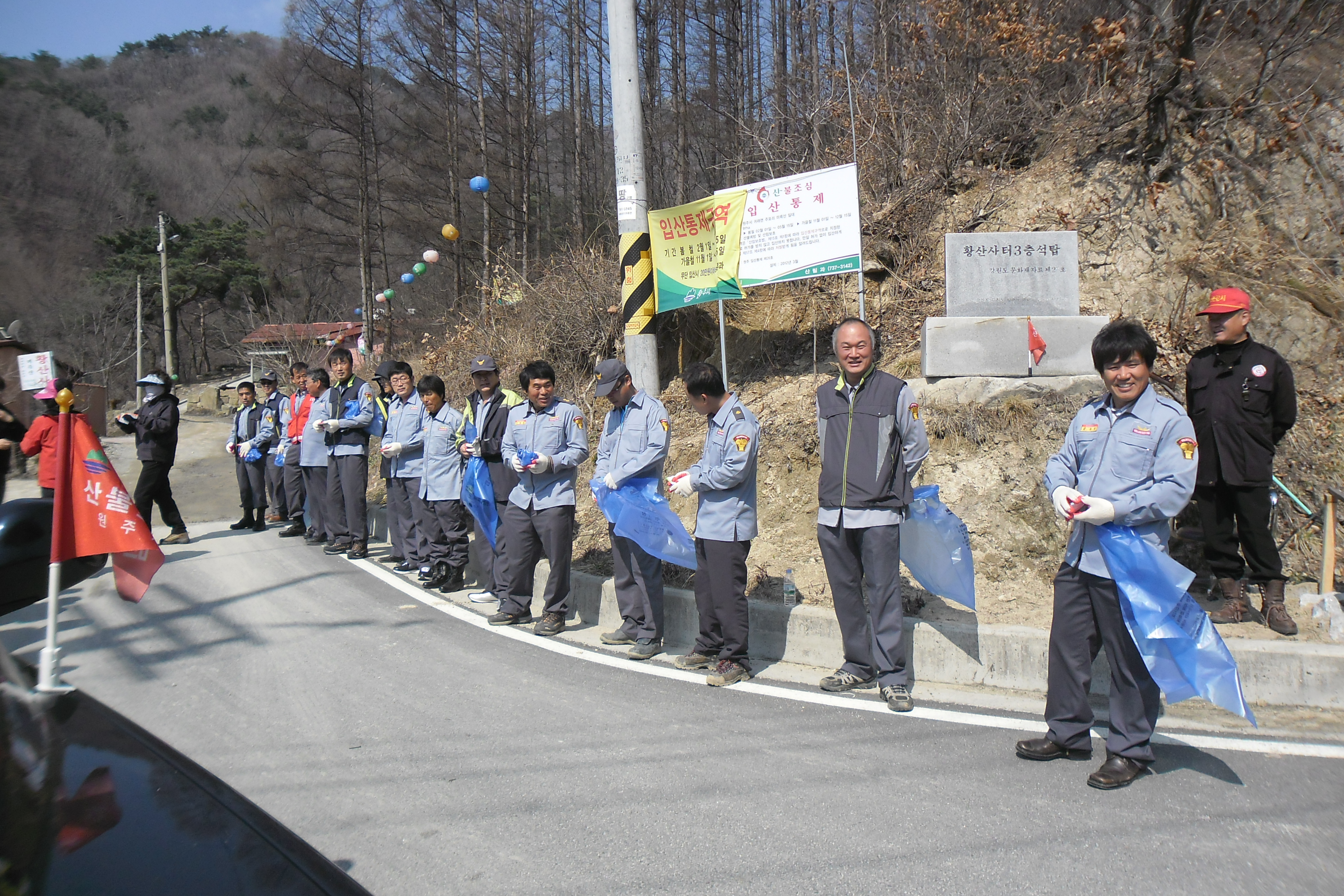 지난4월5일 미륵산입구에서 산불홍보및 전단지배포 미륵산 황산사 절까지 쓰레기줍기 운계천 (주포2리)쓰레기 줍기
