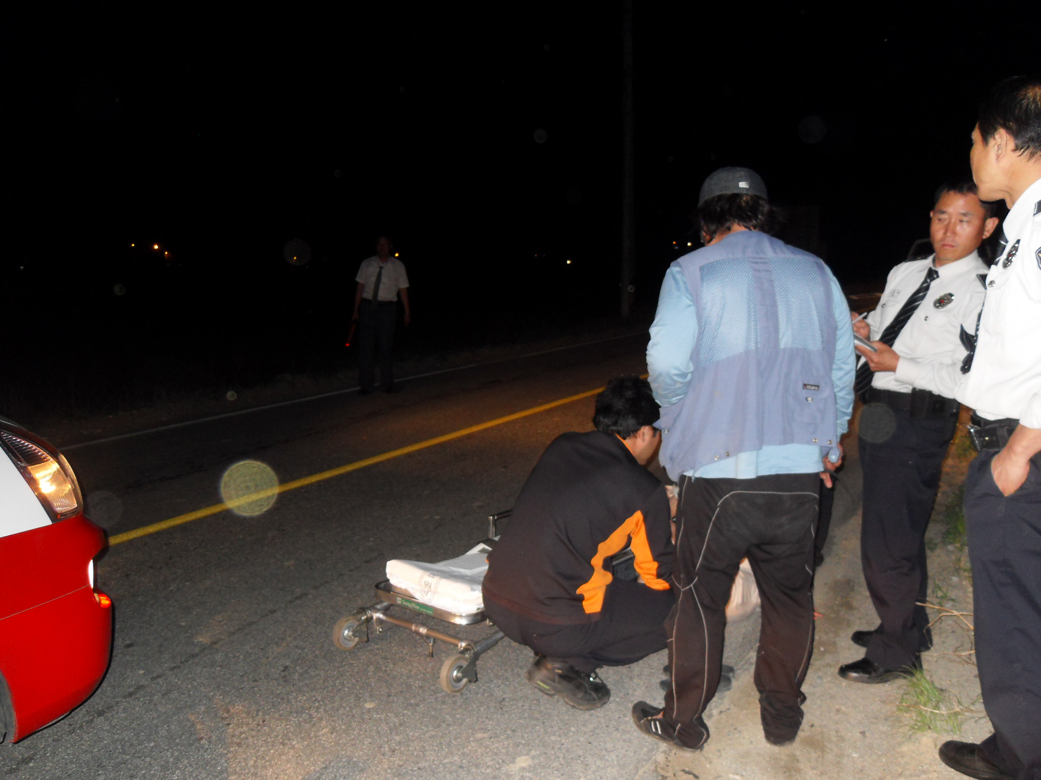 4월 30일 오후 8시경 퇴근길에 흥호리마을회관 앞에서 뺑소니차량에 의한 교통사고자를 목격하여 즉각 안전하게 주차하고 구급차와 경찰차가 출동하여 환자를 이송할때까지 차량에 의한 2차 사고를 예방하기 위한 교통정리 작업을 진행했습니다. 환자분이 병원에 가지 않겠다고 버티시는 바람에 출동하신 대원님들이 고생이 많으셨습니다. 잘 치료하시고 뺑소니 차량도 반드시 잡았으면 좋겠습니다. 환자 형부되시는분이 위치정보를 잘못신고하셔서 출동에 조금의 지장이 있었습니다. 소방대장님도 고생하셨습니다.