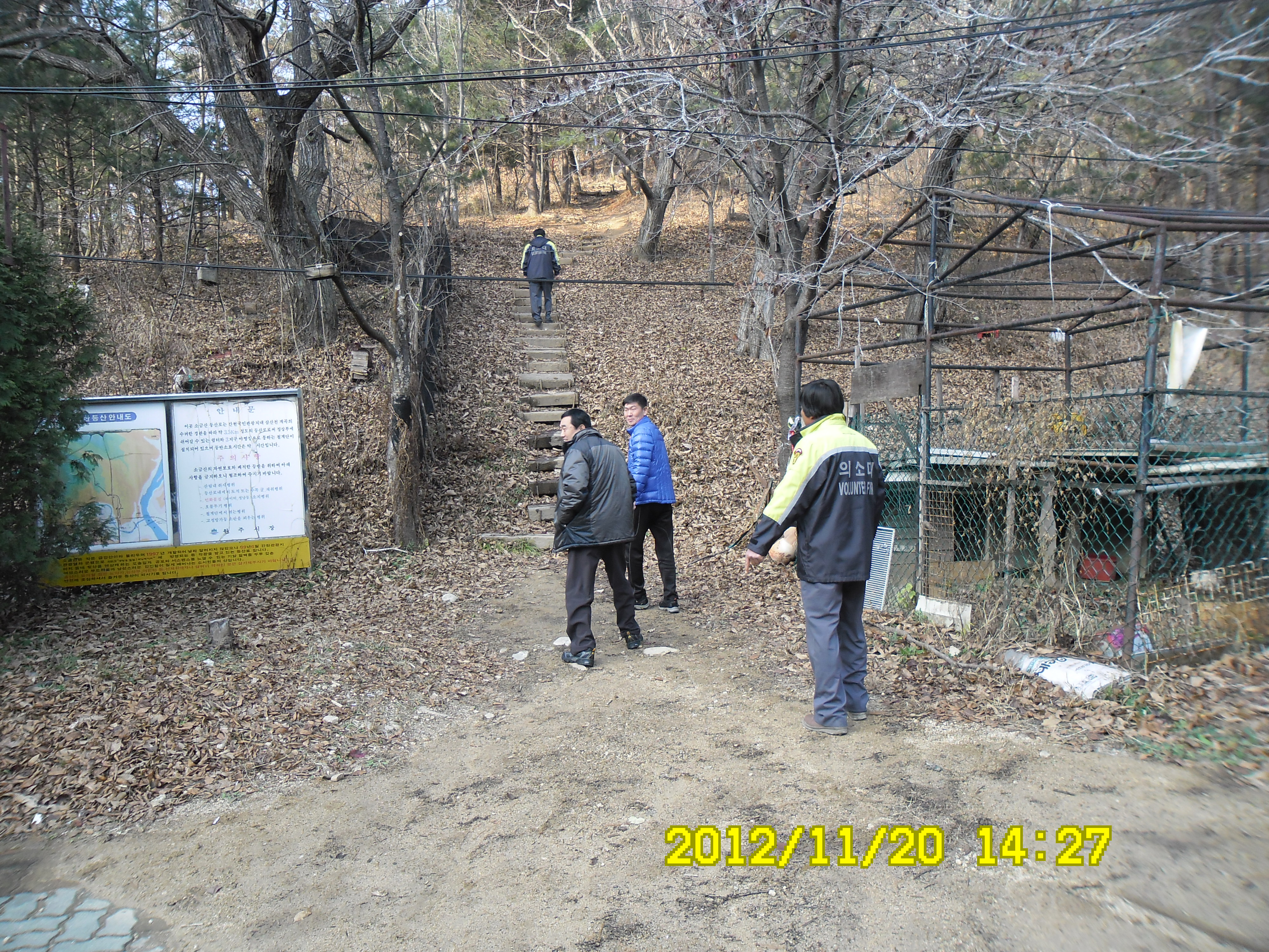 2012년 12월 20일지정남여의소대 한현수 대장외19명과 박인수대장외21명은 소금산등산로 앞에서 릴레이산불예방 캠페인에 참여하였습니다.