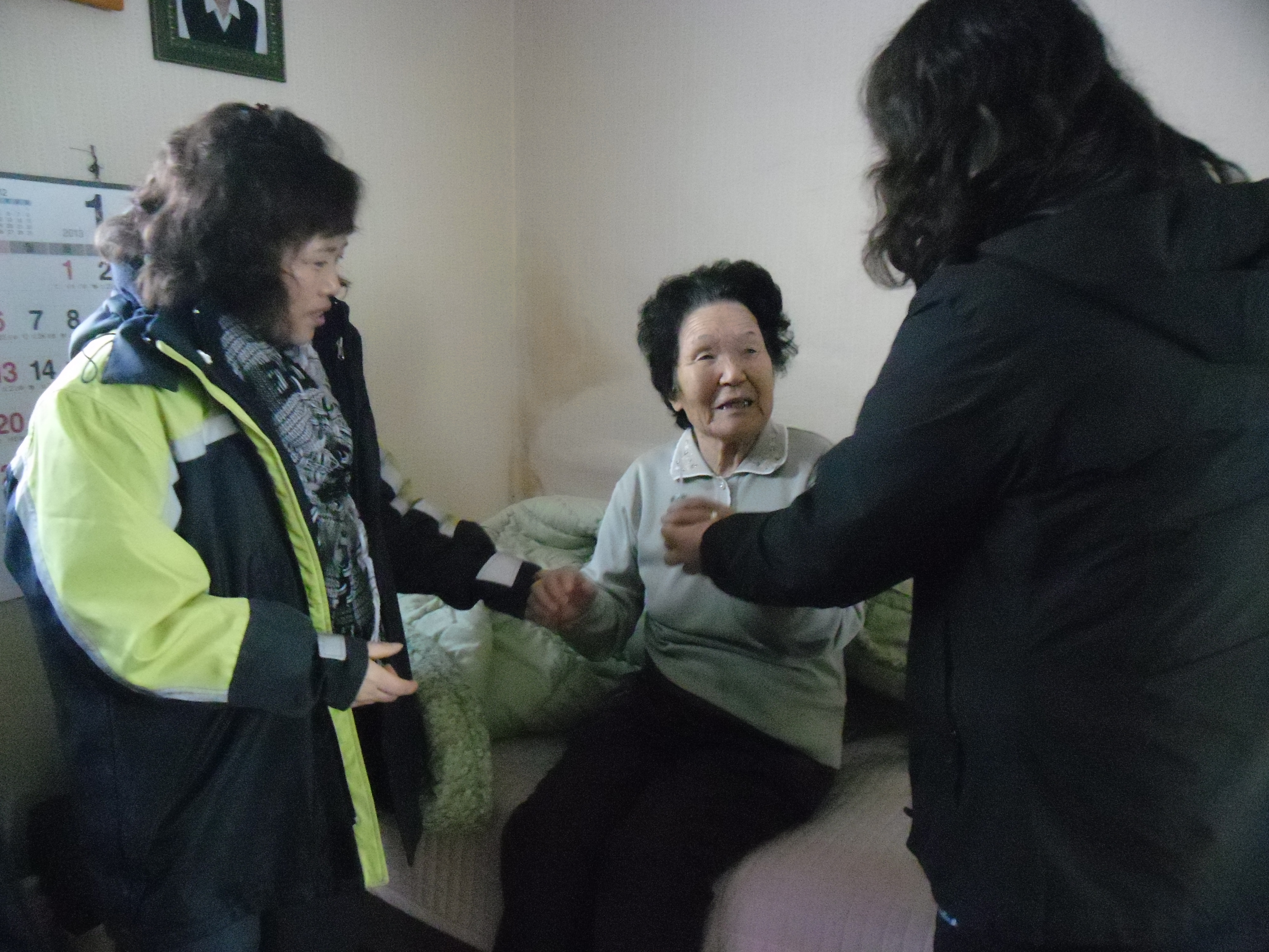 2013년 1월 23일 오후10~12시까지 흥업여성의용소방대는 (대장:이은희 외 총무부 6명) 흥업리에 사시는 독거노인에게 우리대원이 직접만든 반찬을 독거노인댁에 직접 배달하였습니다.