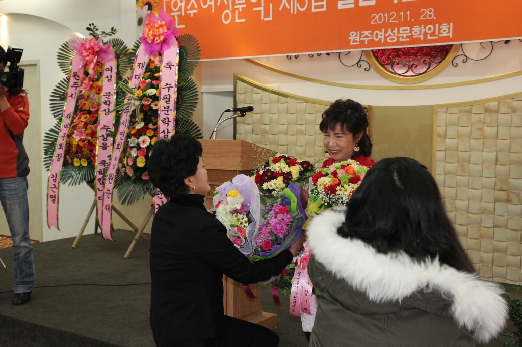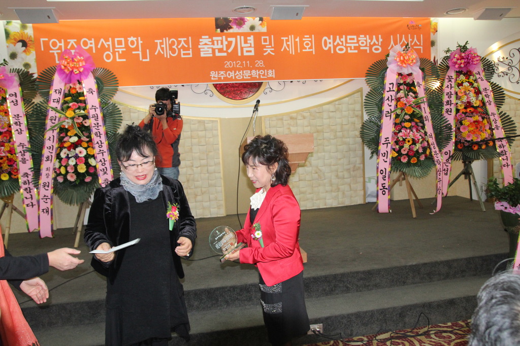 지난 해 12월 호저면 원주웨딩홀에서 잇었던 호저면 여성대 이명신 홍보부장의 원주여성문학상 시상식과 수필집 "내 인생 투잡 쓰리잡" 출판회를 열었습니다. 이곳에 올려도 되는지를 몰라 망설이다가 홍보부장의 판단으로 올려봅니다 삭제하셔도 무방합니다 대장님을 비롯한 많은 대원들의 축하와 격려속에 성공적인 행사를 치뤘답니다