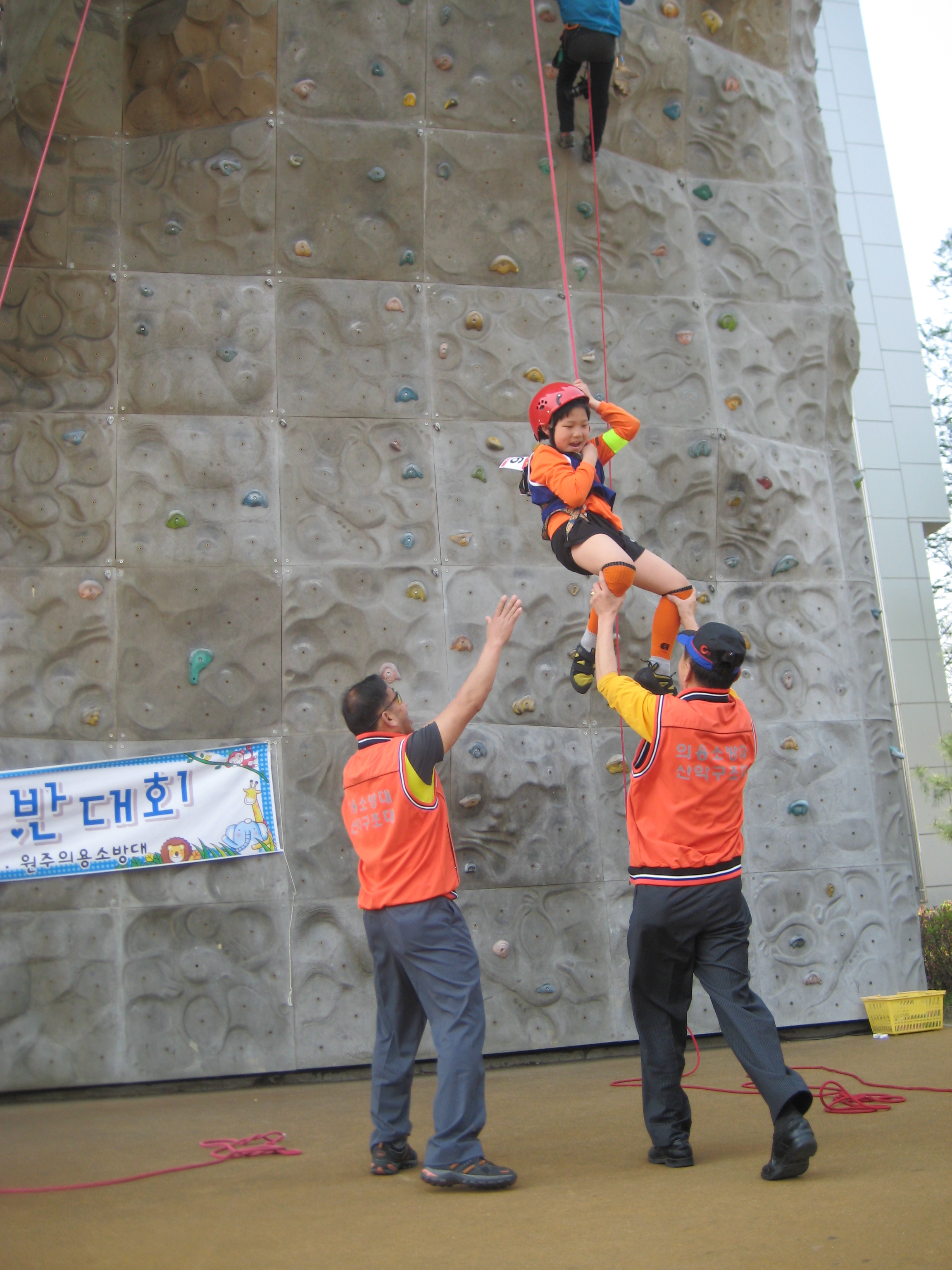 원주의용소방대(대장 조성일)는 5월5일 제14회 어린이암벽대회를 원주시암벽장에서 원주클라이머스 회원들과 우리대원 20명이 참가하여 어린이 300명에게 체험 암벽등반을 할수있게 도와 주었읍니다. 원주시남,여 연합대 대장님과 총무님,원주여성대 박정희반장님이 참가하여 격려 해 주셨습니다