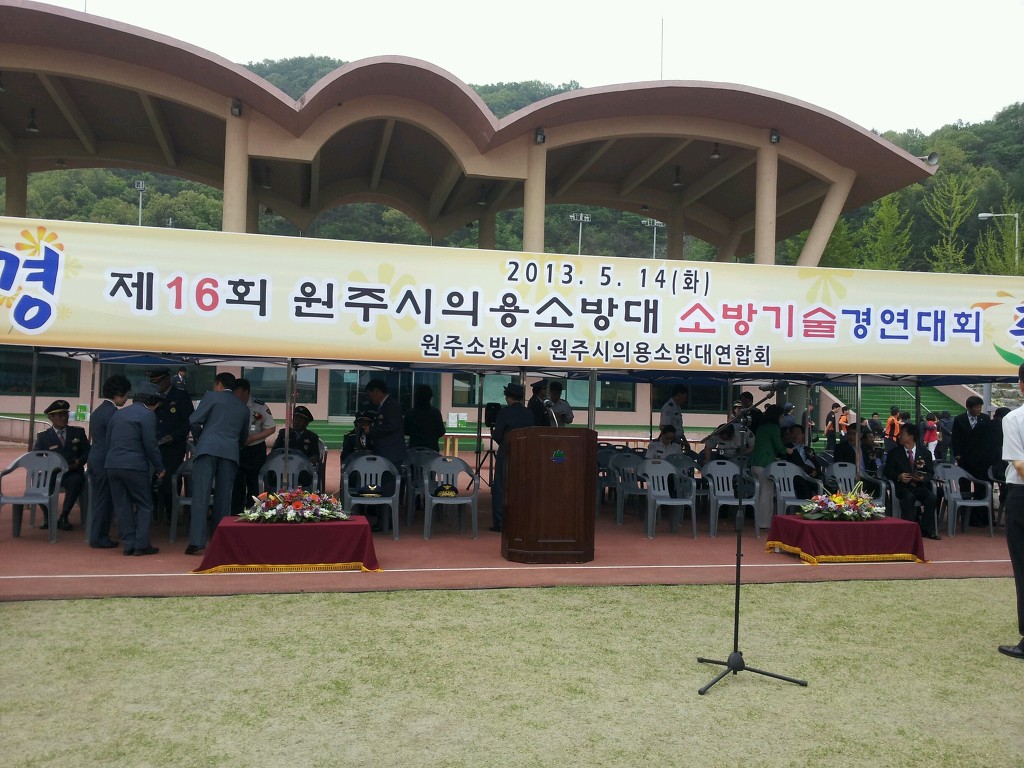 | 2013년 5월14일 문막 양궁장에서 제16회 소방기술경연대회가 있었읍니다 화창한 계절의여왕 5월에 햇빛작렬하는 운동장에서 대별로 연습한 부목고정및 심페소생술 소방호수끌기 단체줄넘기 남자들에 족구 등등 ....저마다에 실력을 자랑하는 한마당이었습니다 |