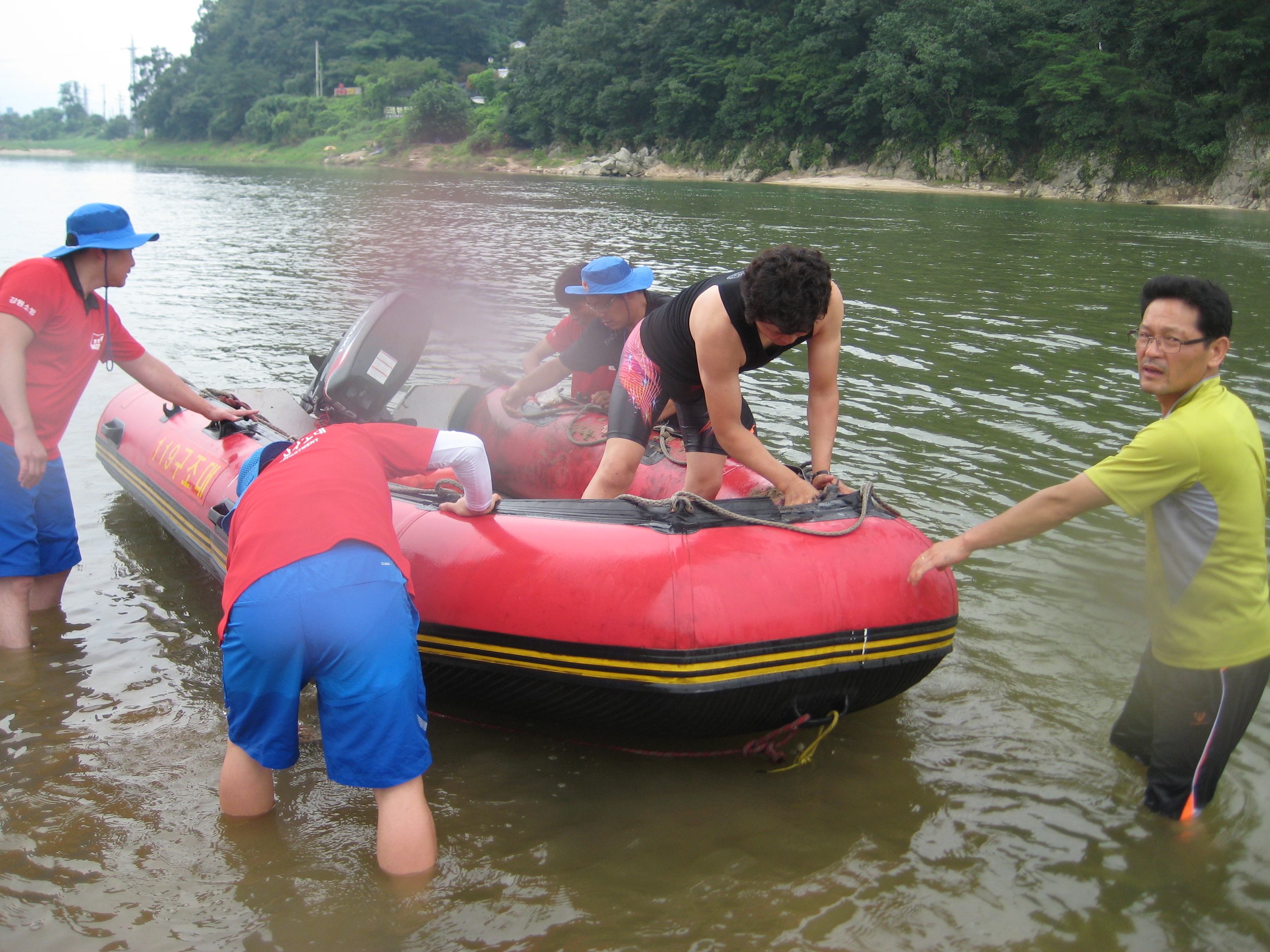 원주의용소방대(대장 조성일) 훈련반,구조반 대원12명이 참가하여 섬강에서 보트 정검과 물속 쓰레기 수거를 실시했습니다.