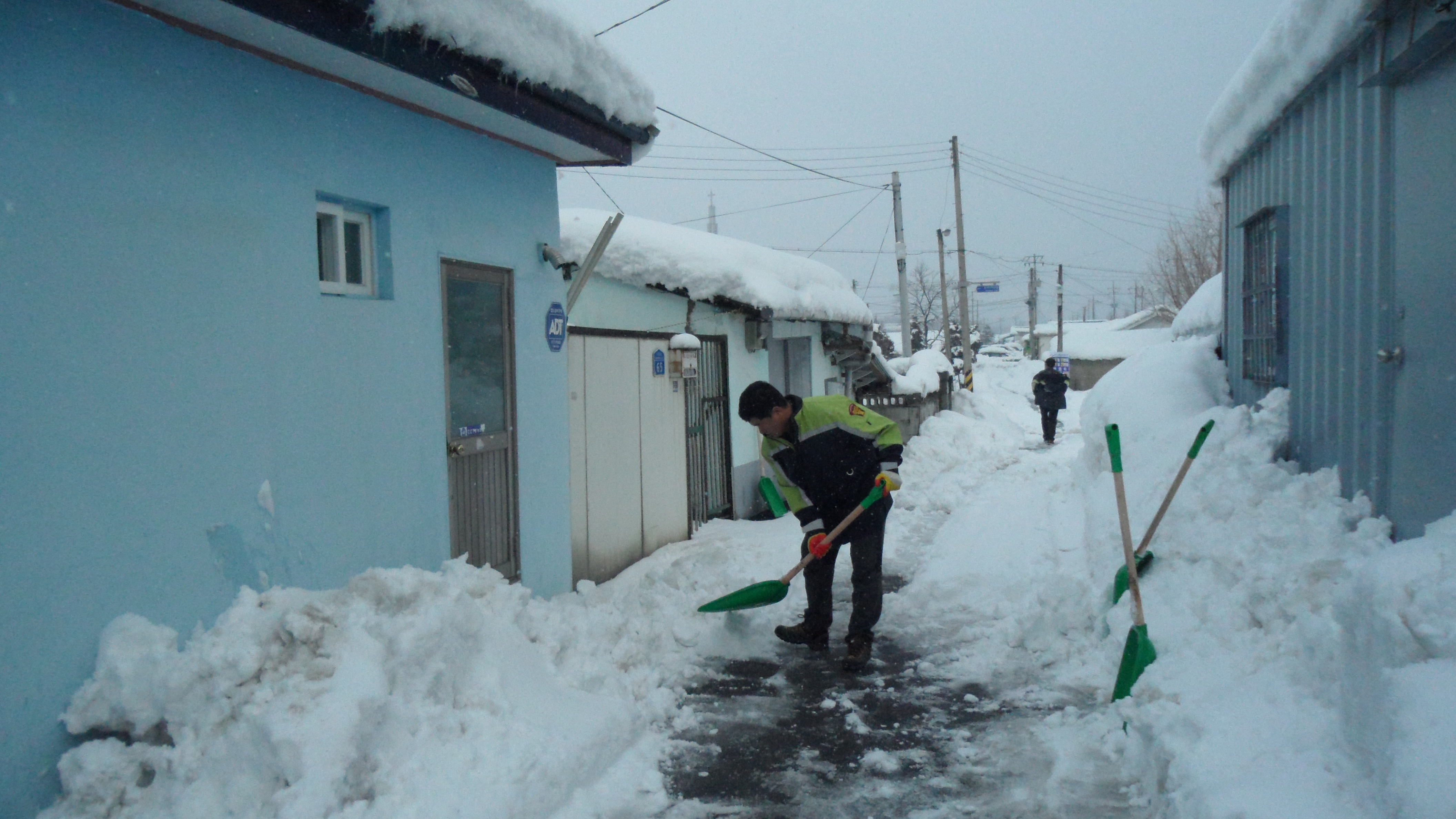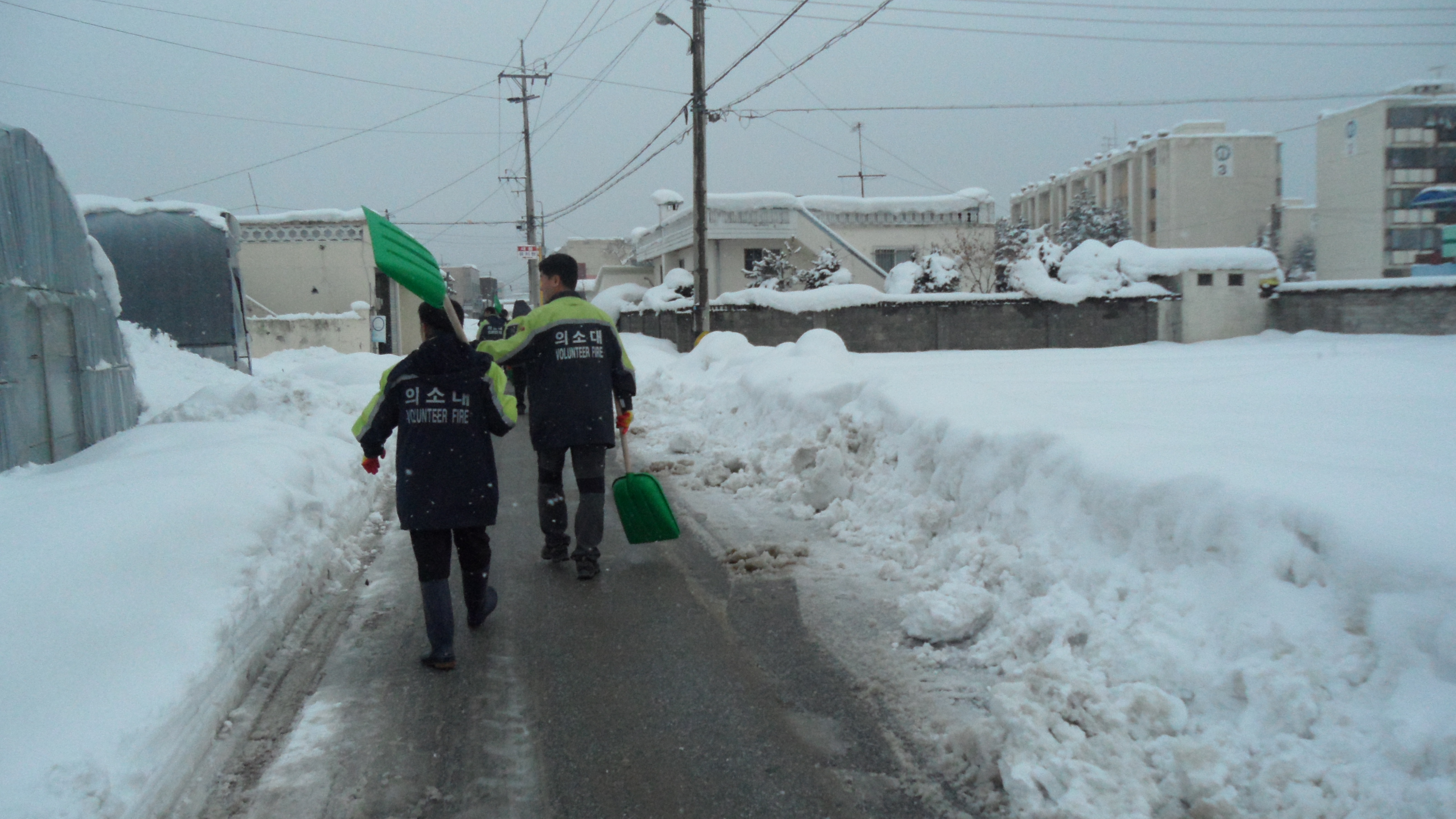 제설작업 봉사활동 작업에 임했다.
