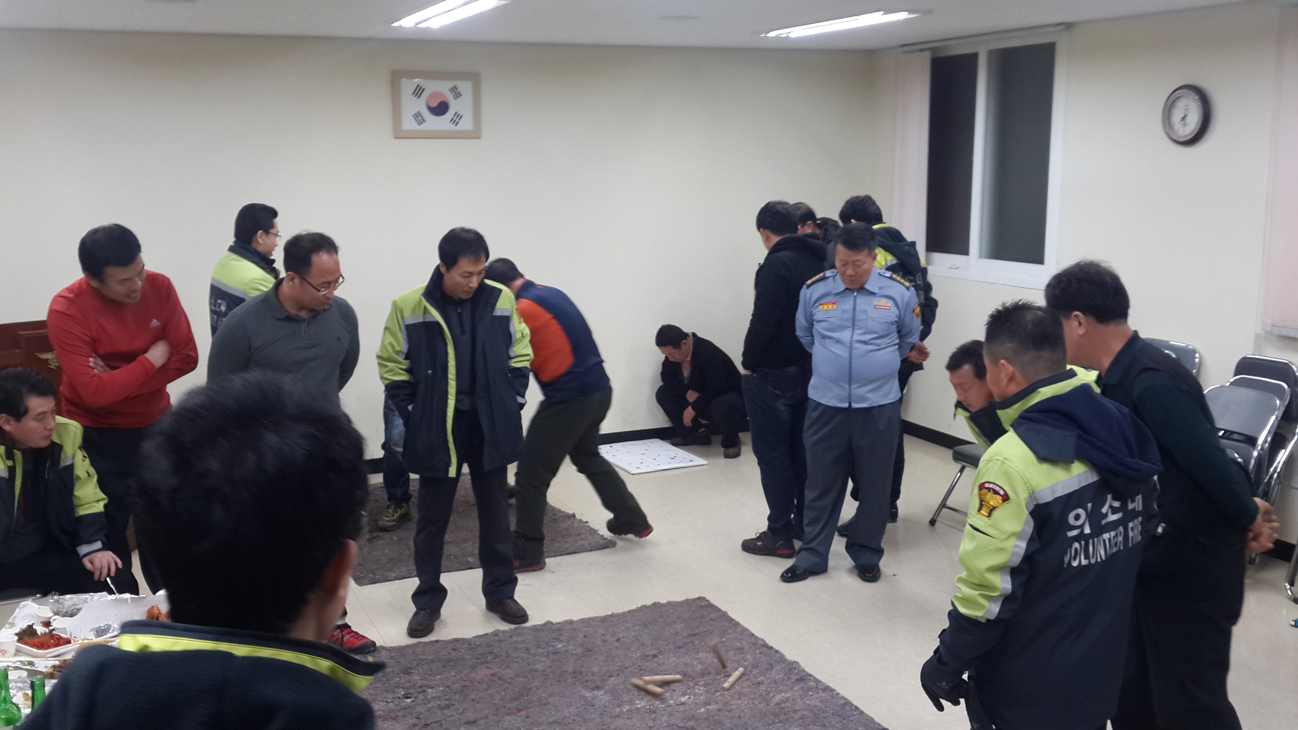 원주의용소방대(대장 조성일)는 2월14일 16:00-21:00까지 원주의소대 사무실에서 대원 45명이 참가하여 2월 정기교육과 정월대보름을 맞이하여 대원들과 친목을 다지기위한 윳놀이를 실시했습니다