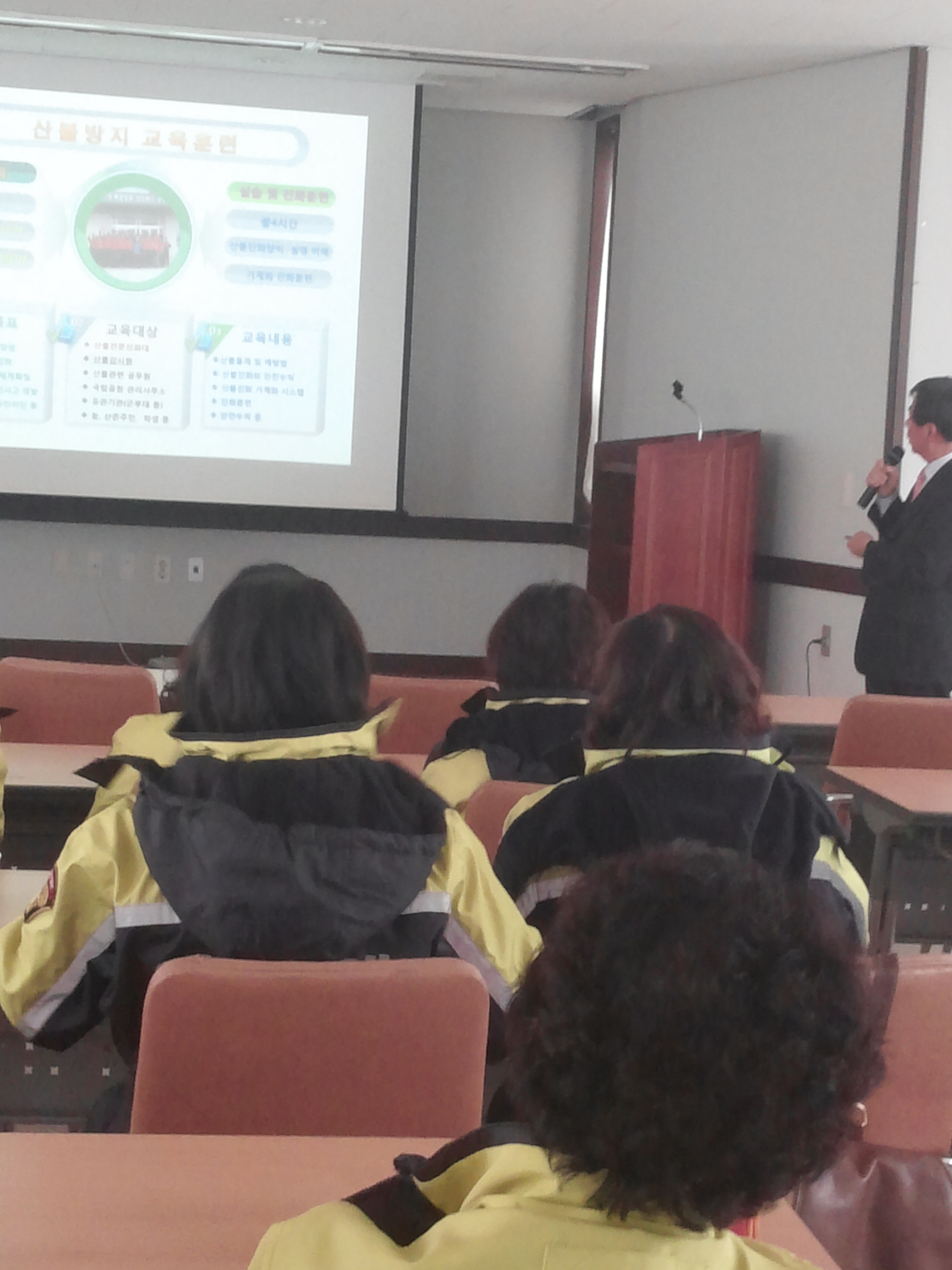 교육을 받았습니다.산불진화,산불종류,산불관련처벌규정등 산불에 관한 면밀한 부분 까지 알차게 교육받는