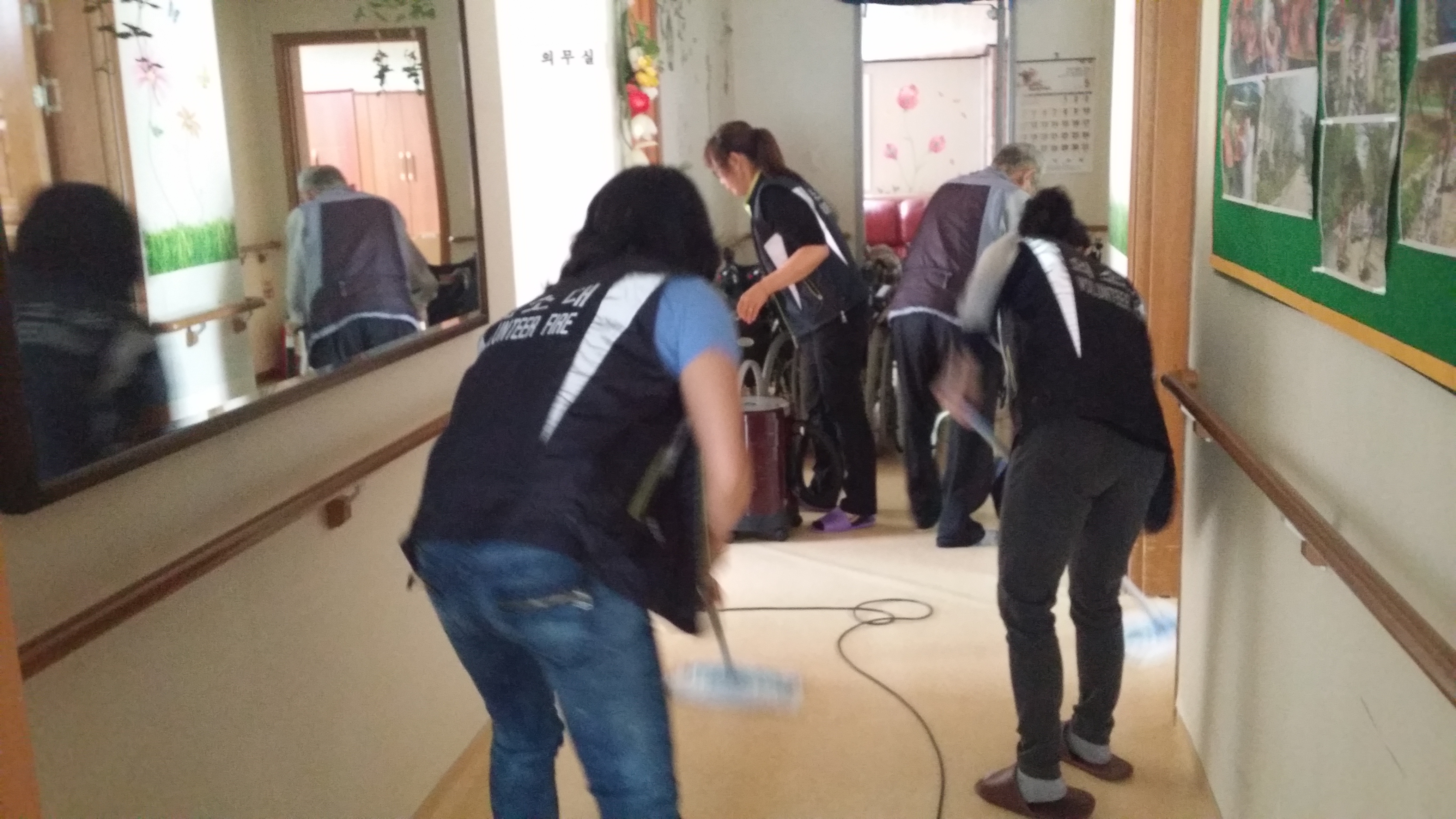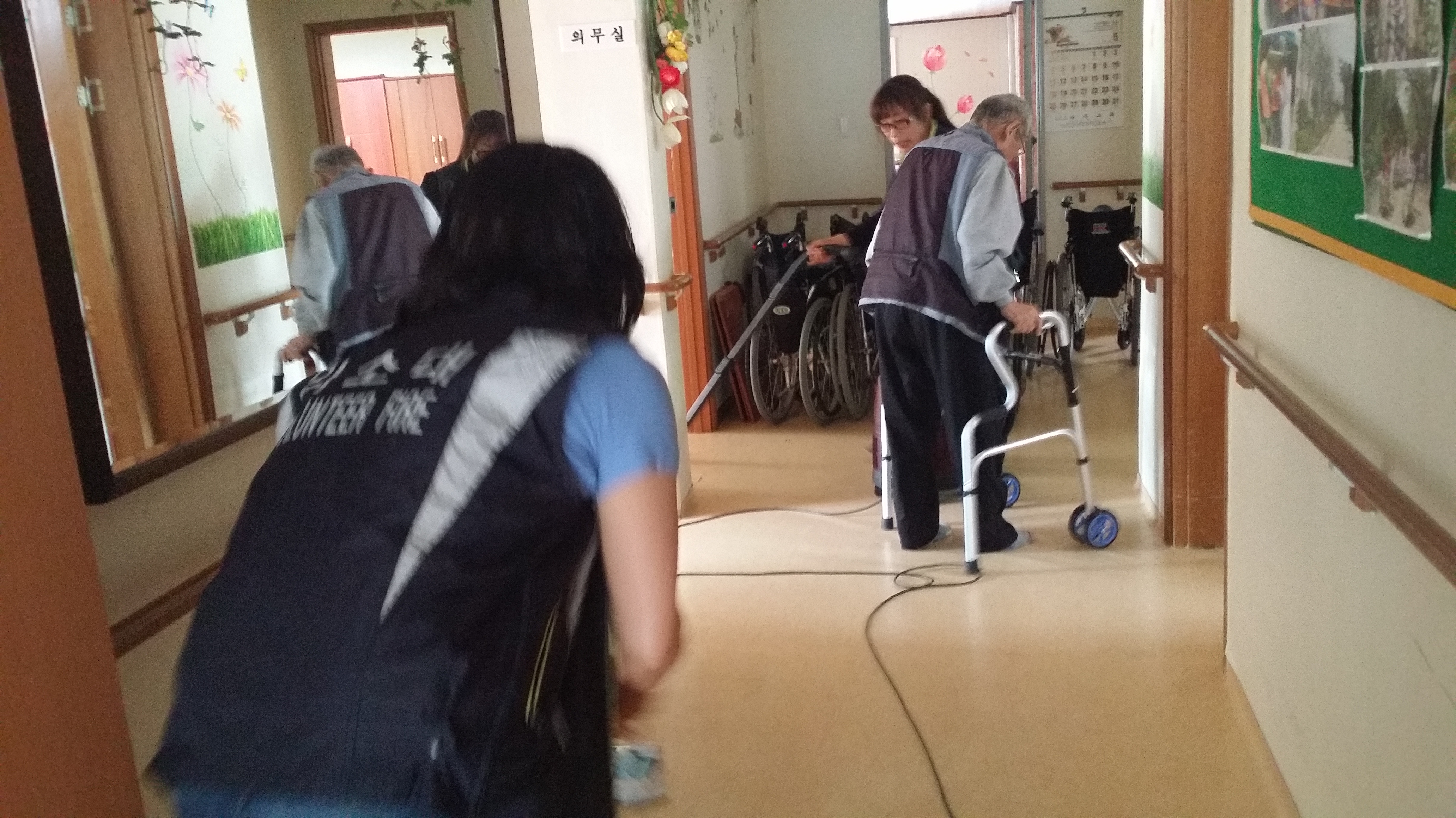 할머니 할아버지들께서 쓰시는 방과 거실 식당등을 청소하고 왔습니다.