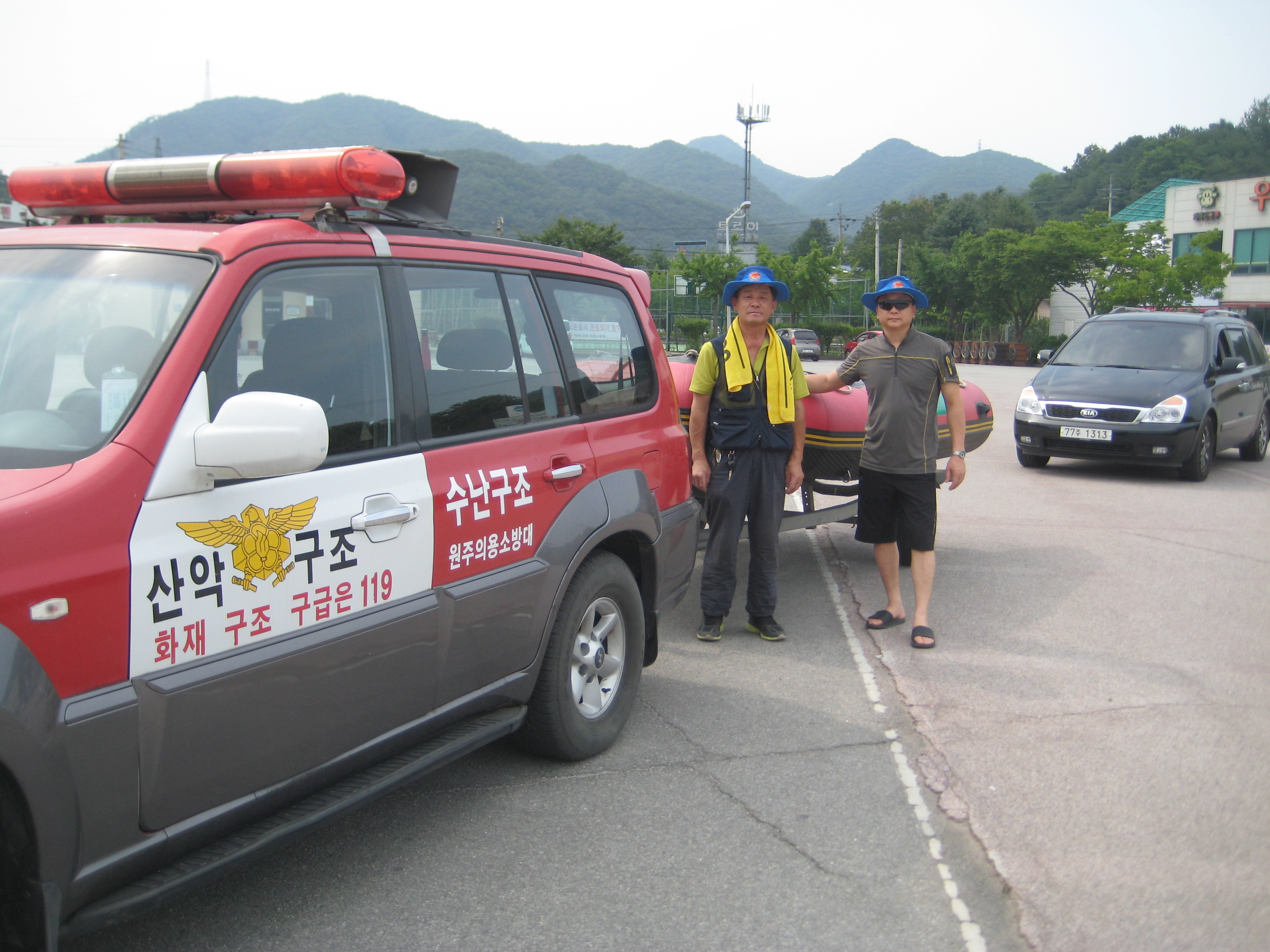원주의용소방대(대장 조성일)는 7월15일섬강에서 보트 및 스킨스스버 장비 저엄 및 훈련을 대장님외 7명이 참가하여 실시했습니다. 지정의용소방대 이완승대장님과 이관 부장님이 찾아오셔서 격려도 해 주셨습니다