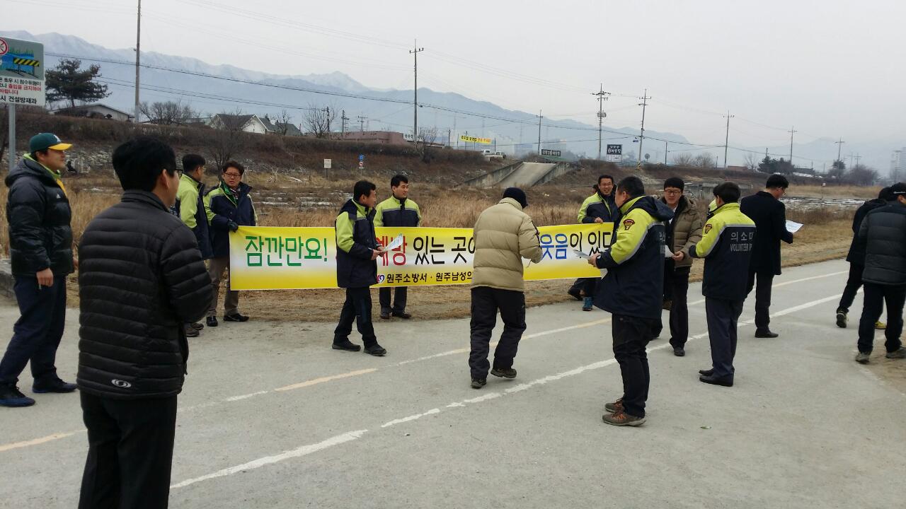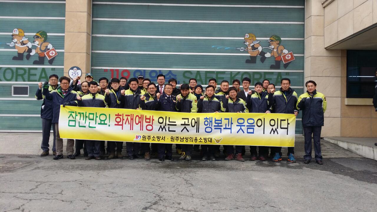 원주의용소방대(대장 조성일)는 1월29일 단구센타에서 1월 정기교육 및 14년 정기총회를 실시했습니다. 이날 총회에는 신입대원 소개와 14년 우수대원 표창을 실시했으며, 소방차 길터주기 안내 켐페인도 단구로에서 대원 30명 참가했습니다.