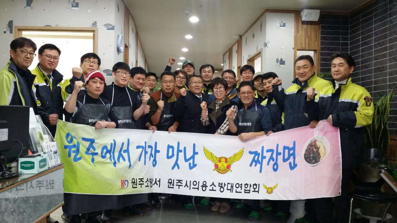 원주의용소방대(대장 조성일)는 3월17일 원주보금자리에서 자장면 중식봉사를 30명의 대원이 참가하여 실시했으며, 봉사후 3월정기교육도 실시했습니다