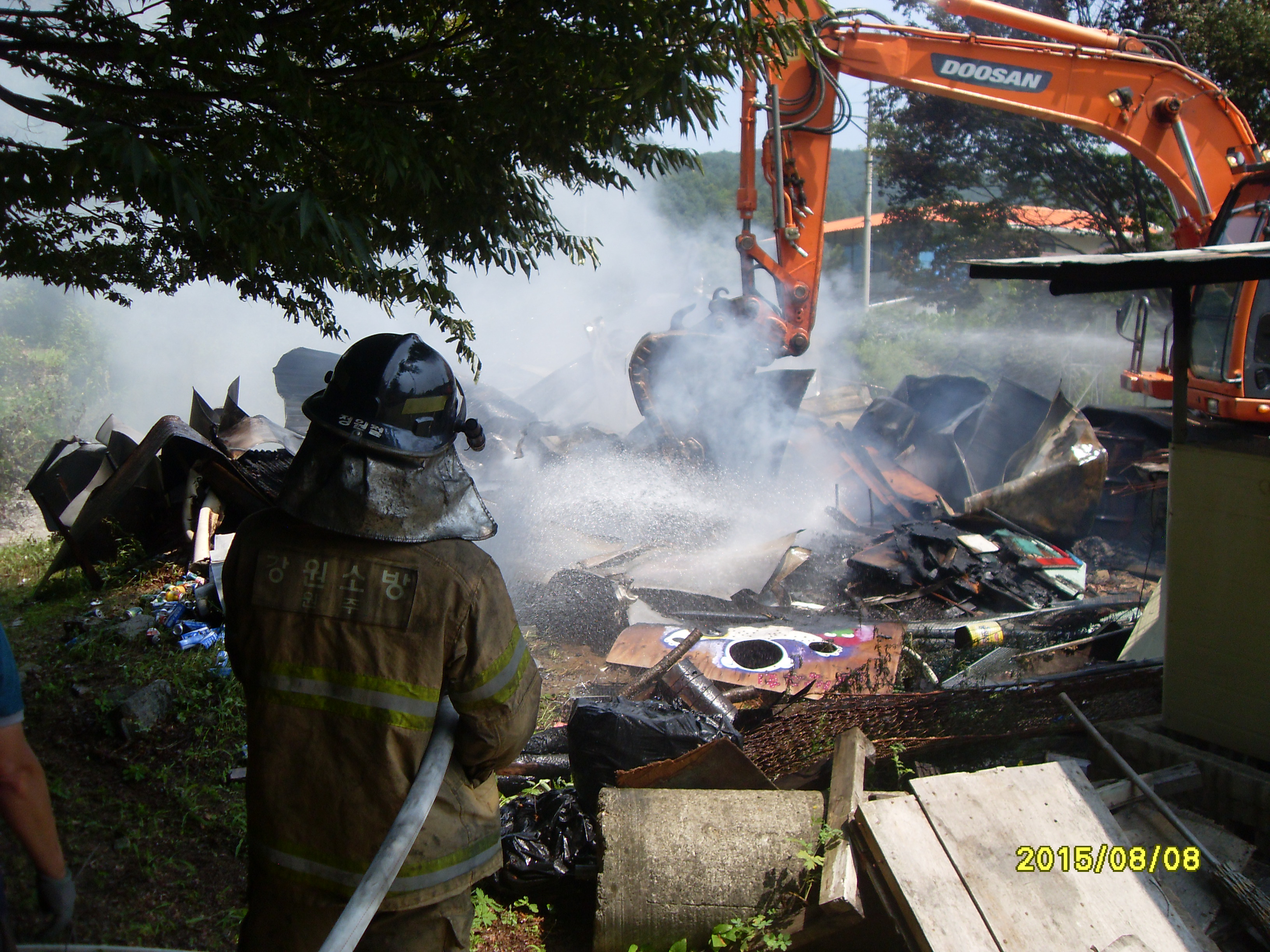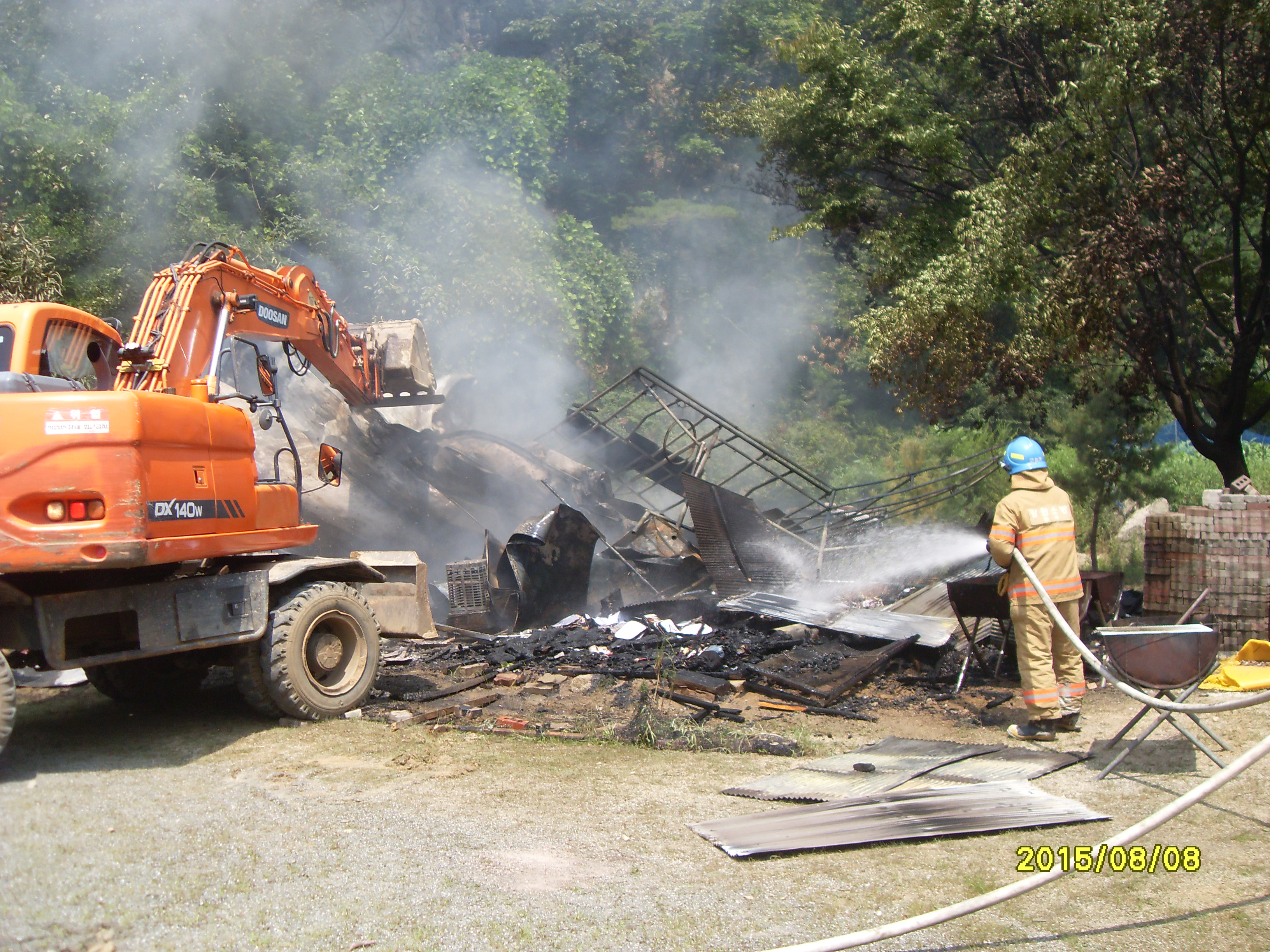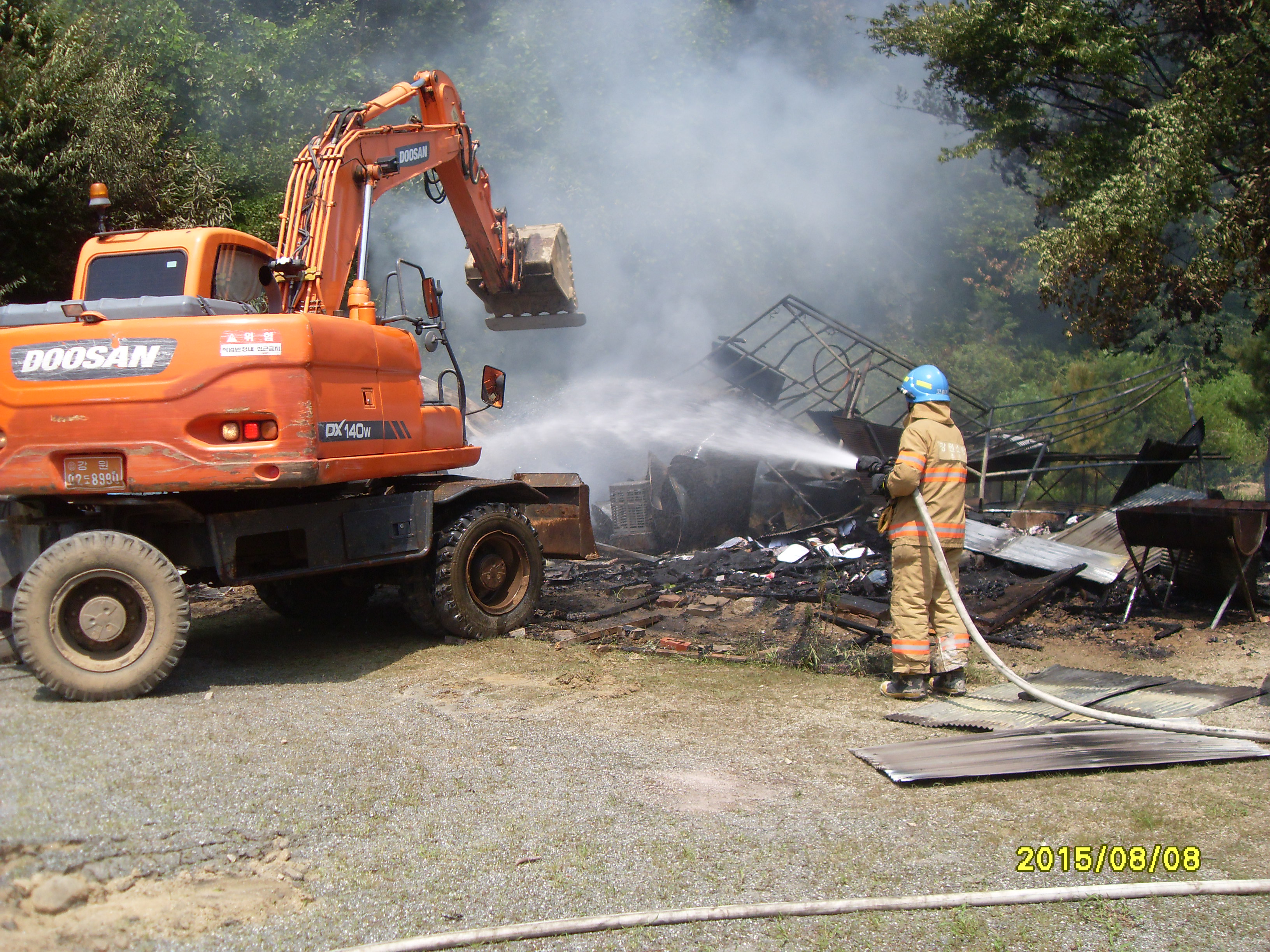 2015년8월8일 오전 10:38 호저면 칠봉수양관 창고 화재신고 접보
