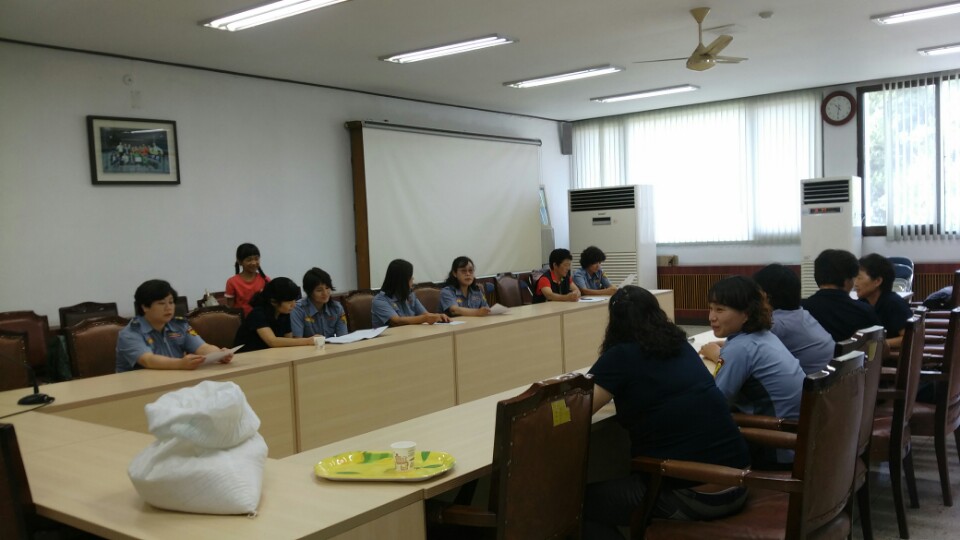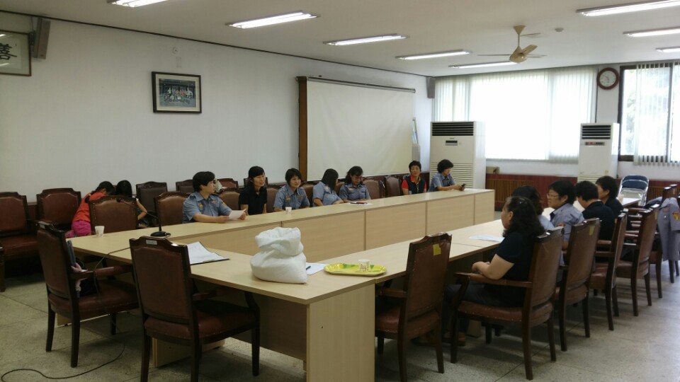 한자리에 모임을 실시하고여성대로서의 여름철 주변상황을 보고하며 회의를 실시하였습니다.