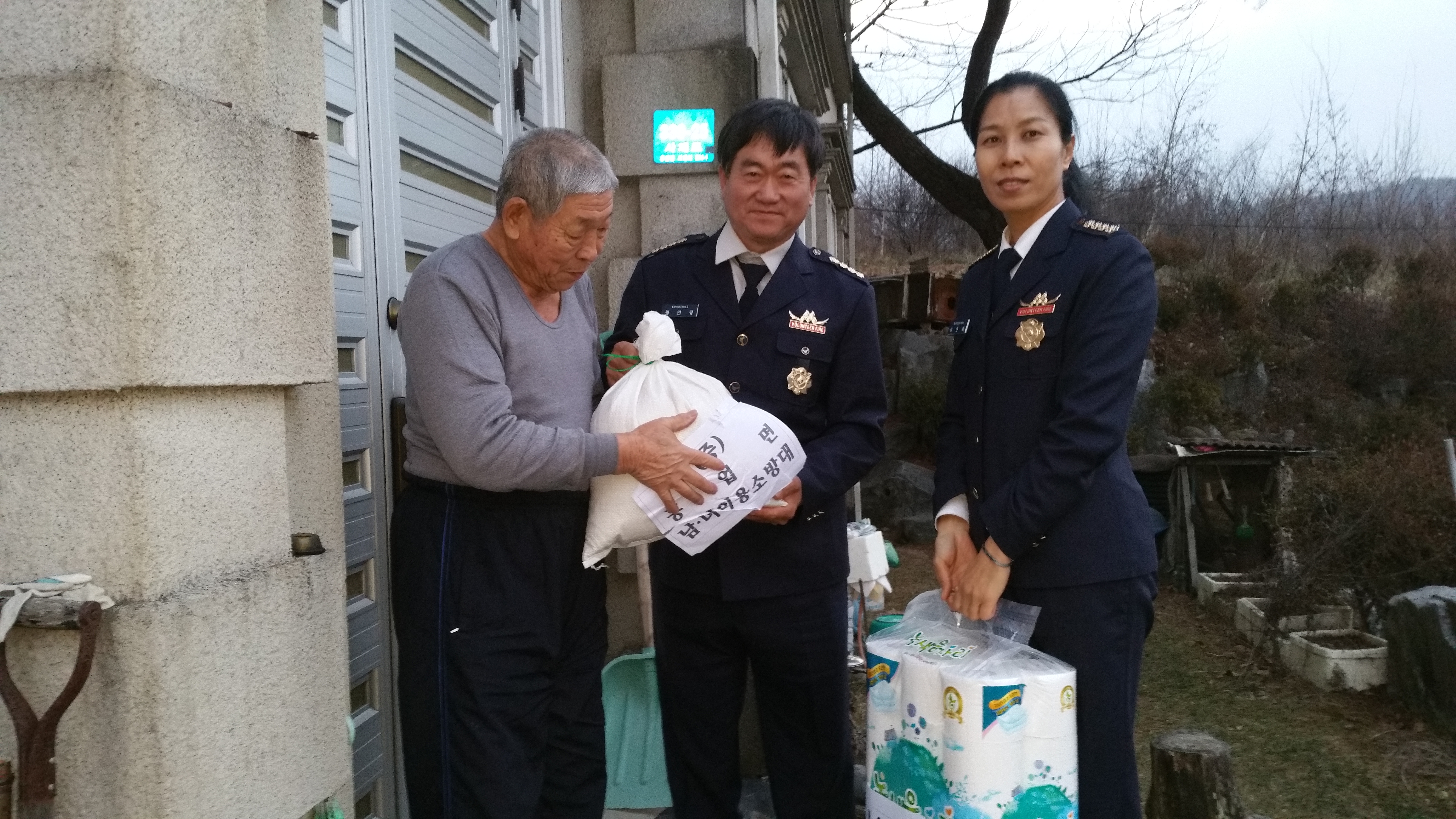 흥업 남.여 의소대 불우이웃돕기"쌀.화장지"전달