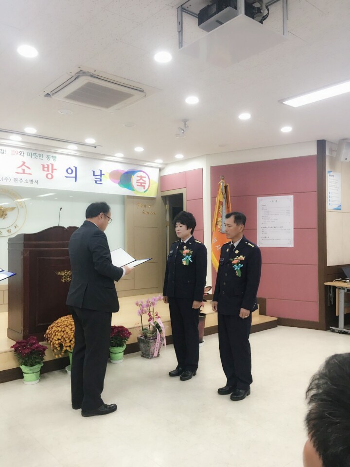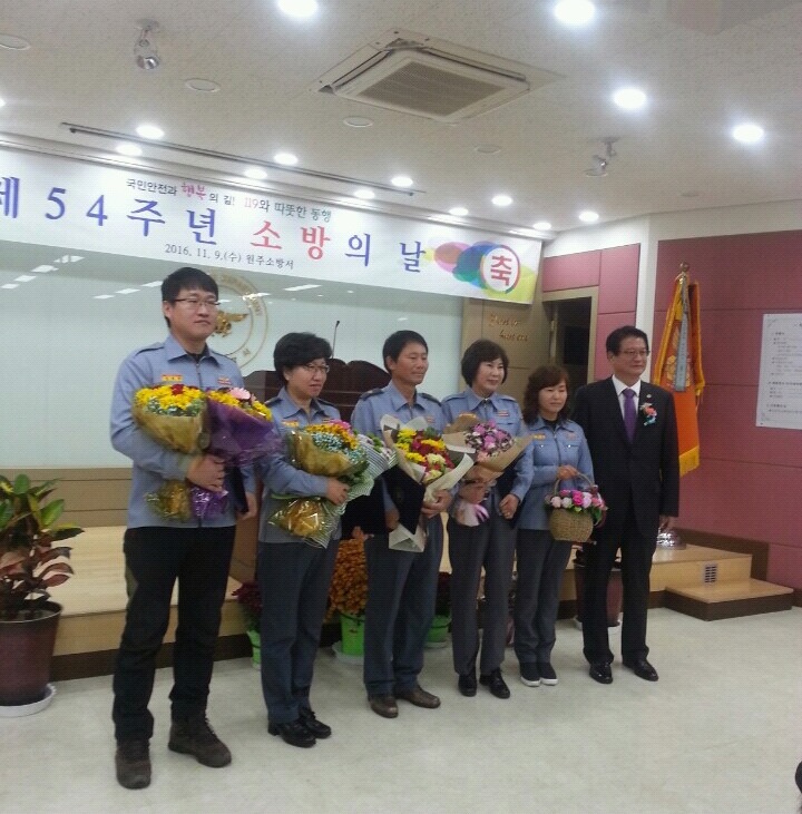 내용: 제54주년 소방의날 행사로 김영연대장님 강원도의회상 박정희반장님 원주시장상을 받았습니다