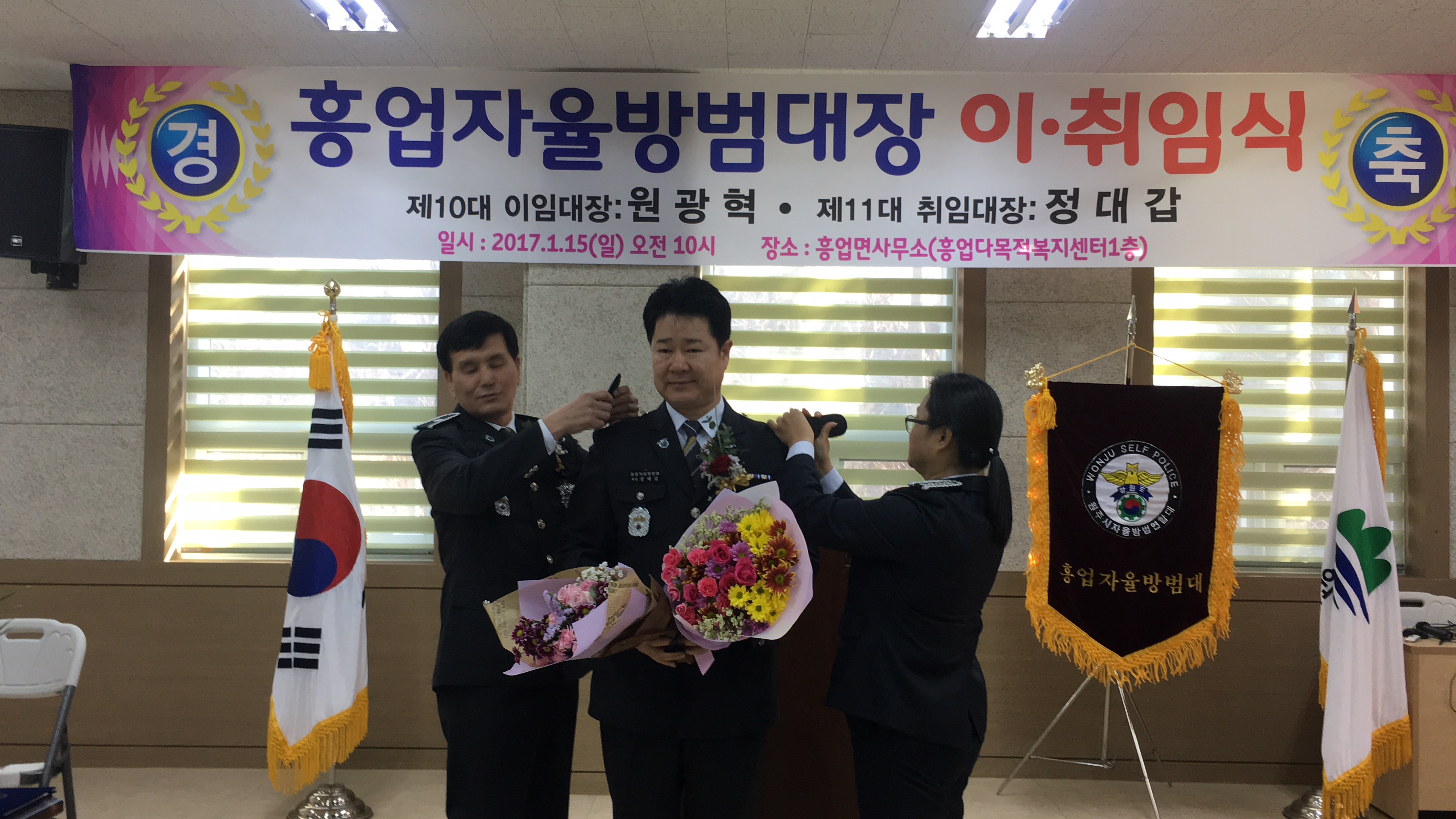 흥업자율방범대 이.취임식에