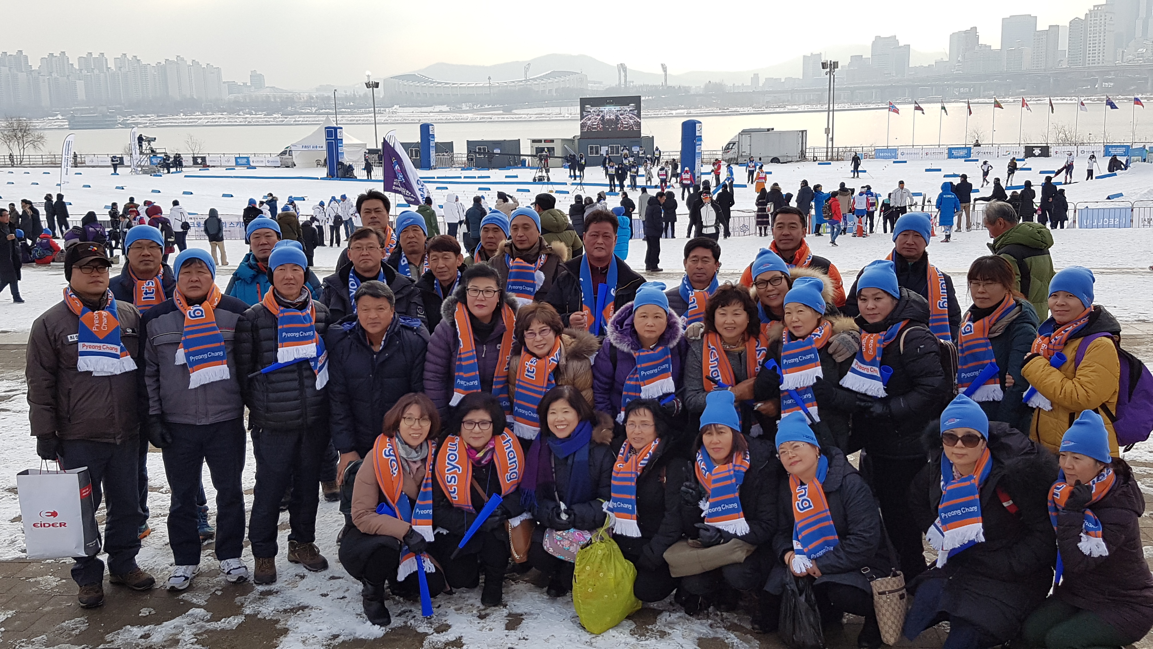 내용 : "국제크로스컨트리" 대회에 모두가 한마음으로 응원과함성 그리고 박수로 2018년 평창동계올림픽