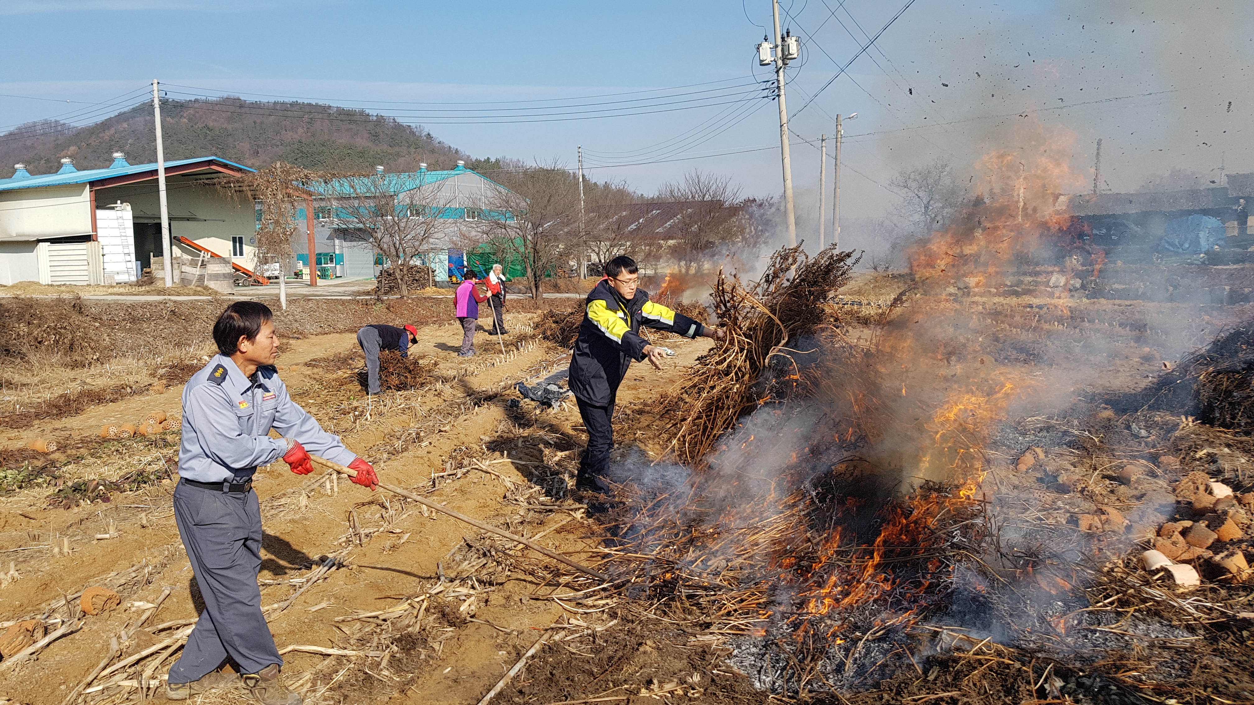 흥업면 사제1리,2리,3리 밭,논두렁 및 잔재물 태우기 공동소각하는