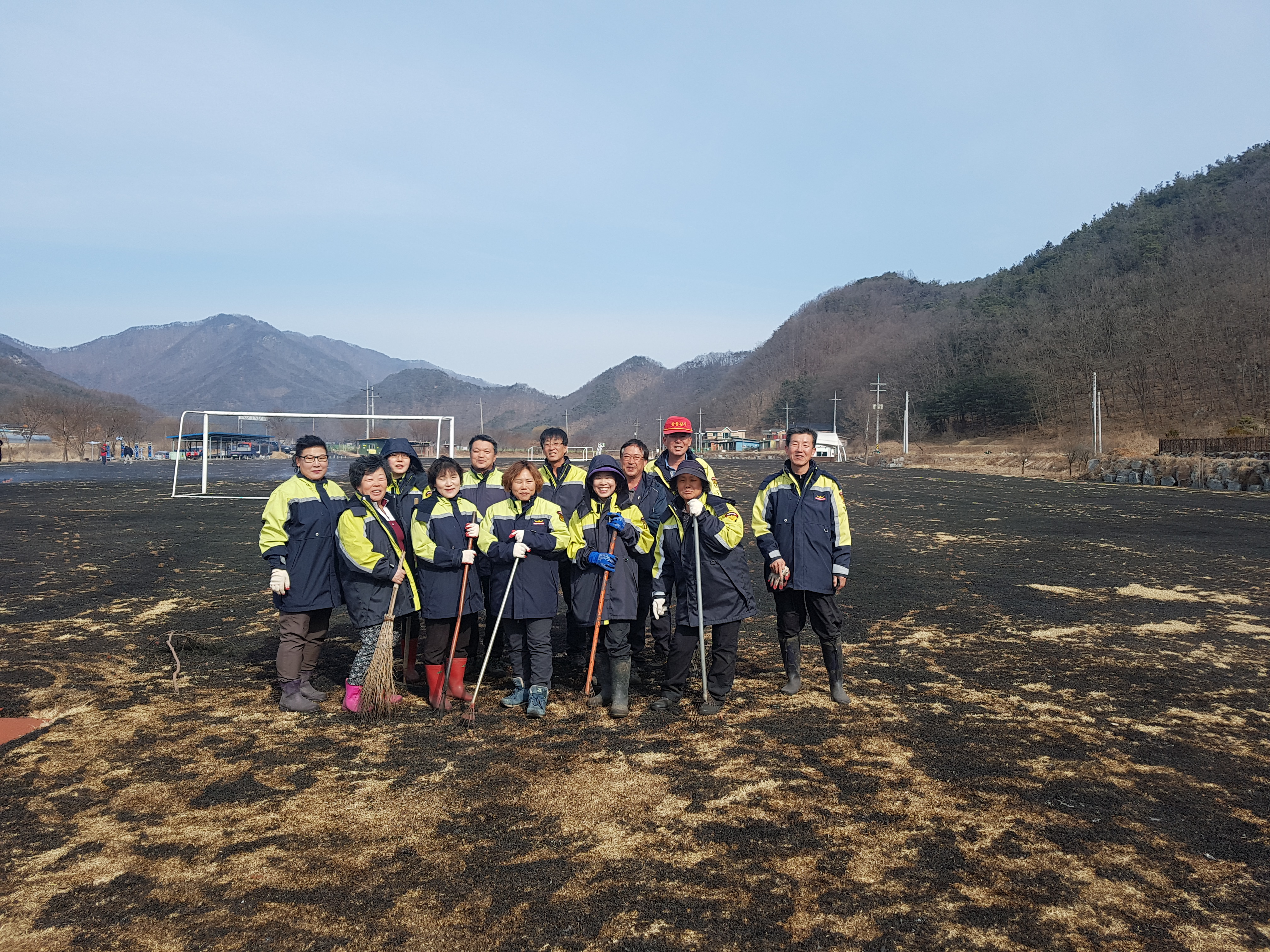 호저면 산현리에 위치한 칠봉체육공원 운동장 잔디구장 소각에