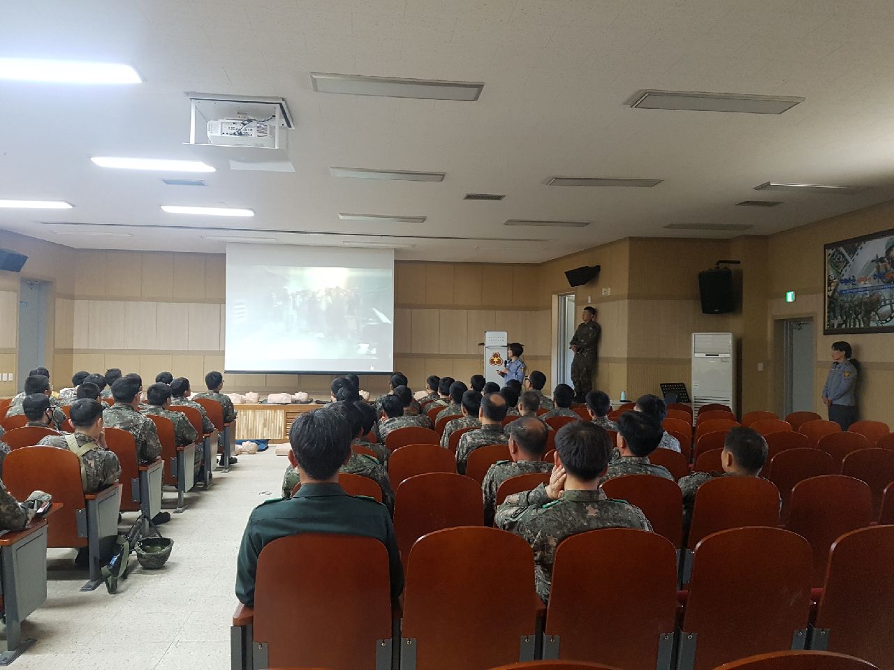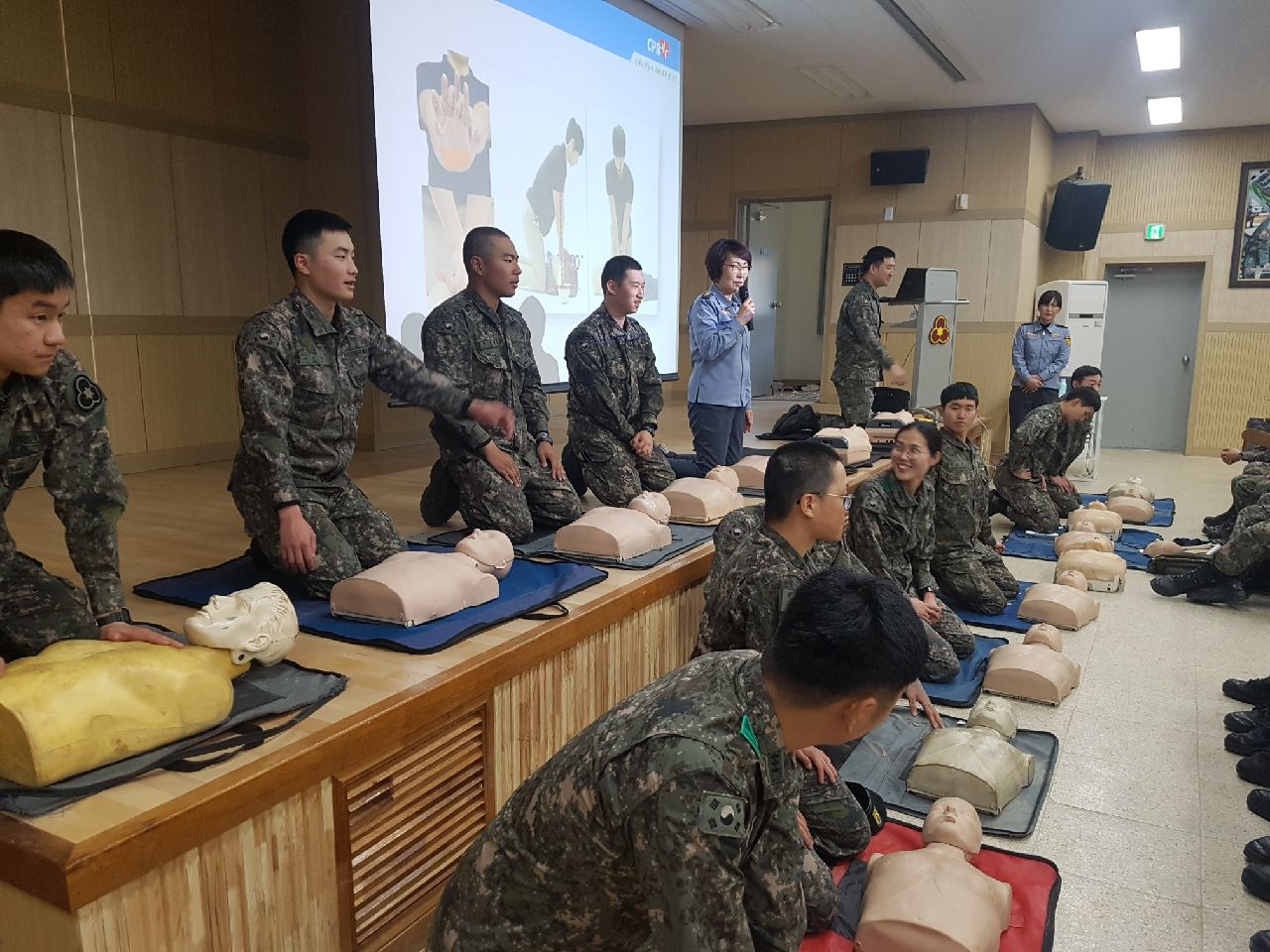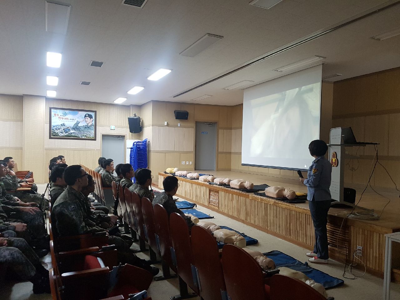 교관및 군장명들에게 응급처치 교육을 실시함