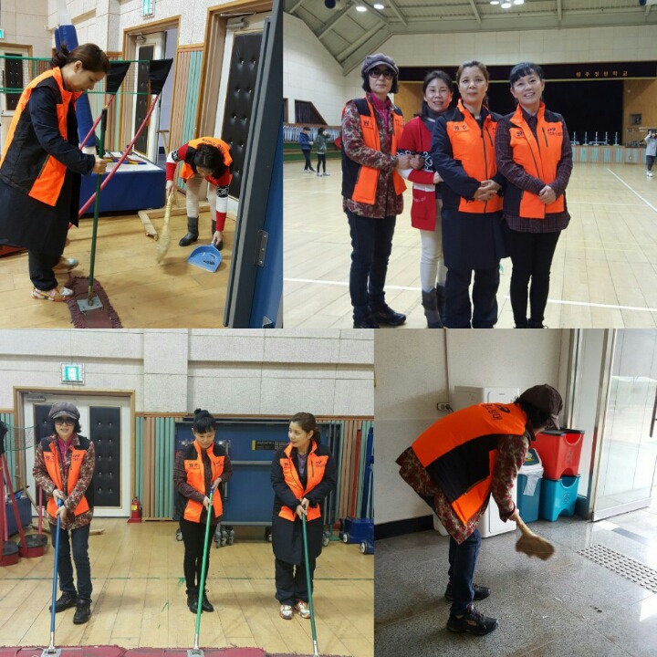 내용: 체육관 실내 바닥청소 및 입구먼지제거 쓰레기분리수거