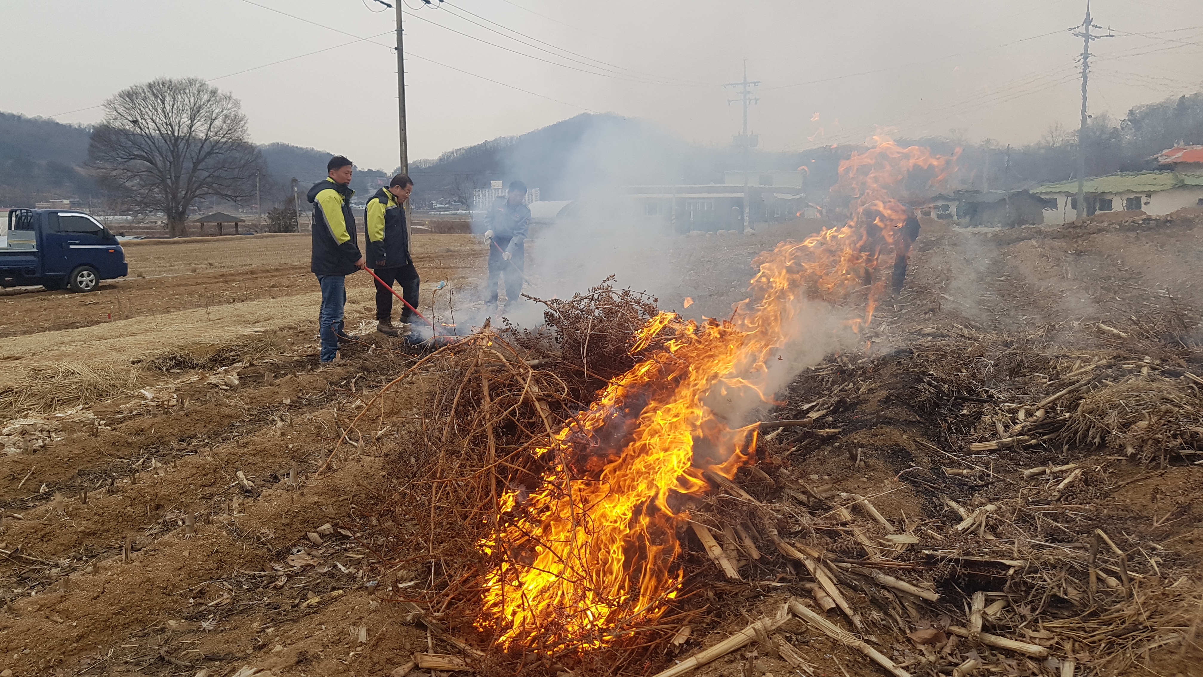흥업남성의용소방대" 사제2리 마을 농작물 소각활동"