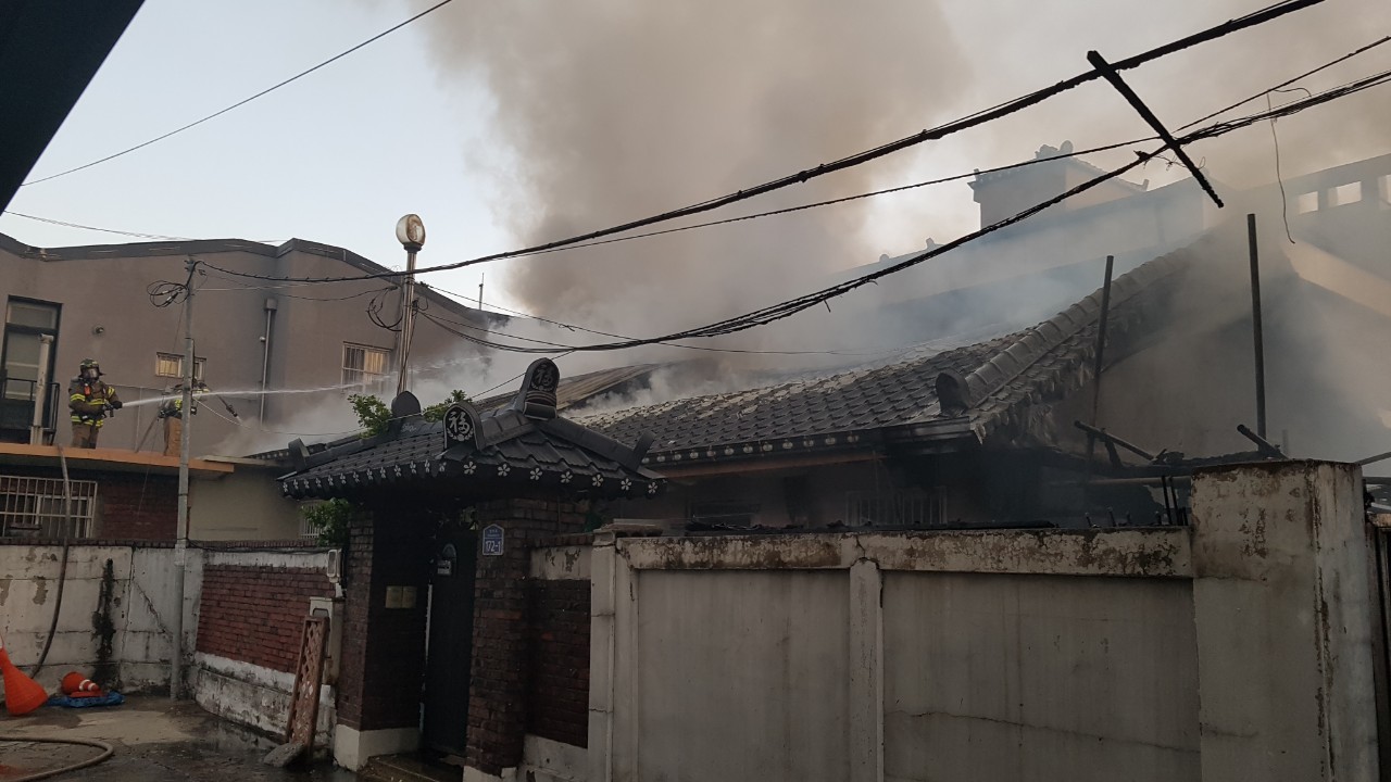 원주남성의용소방대 일산동 화재현장 출동