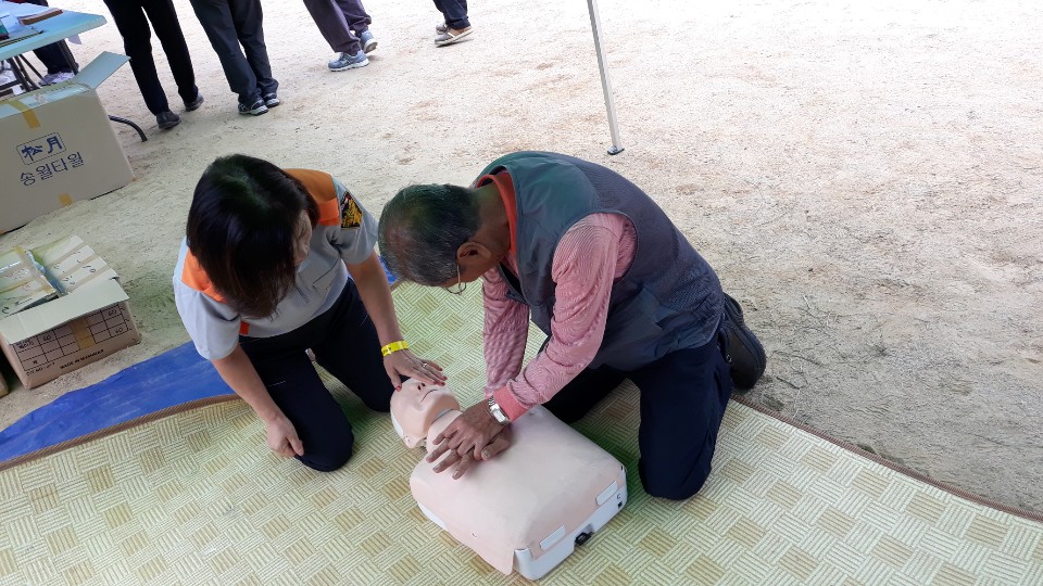 호저면민 체육대회 식전행사로 심폐소생술과 소화기사용법 홍보 하였습니다.