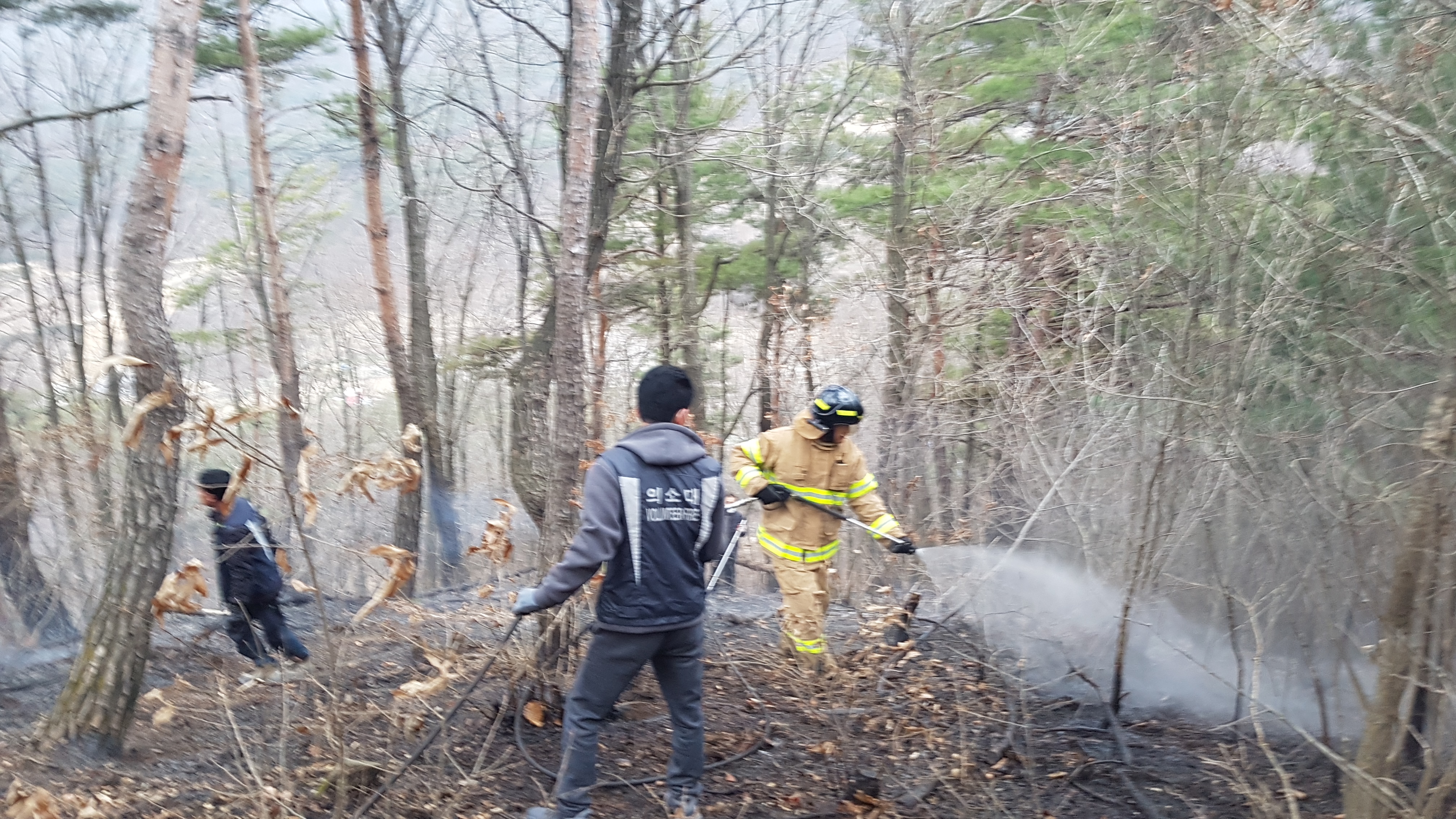 흥업남성의용소방대 "화재출동"
