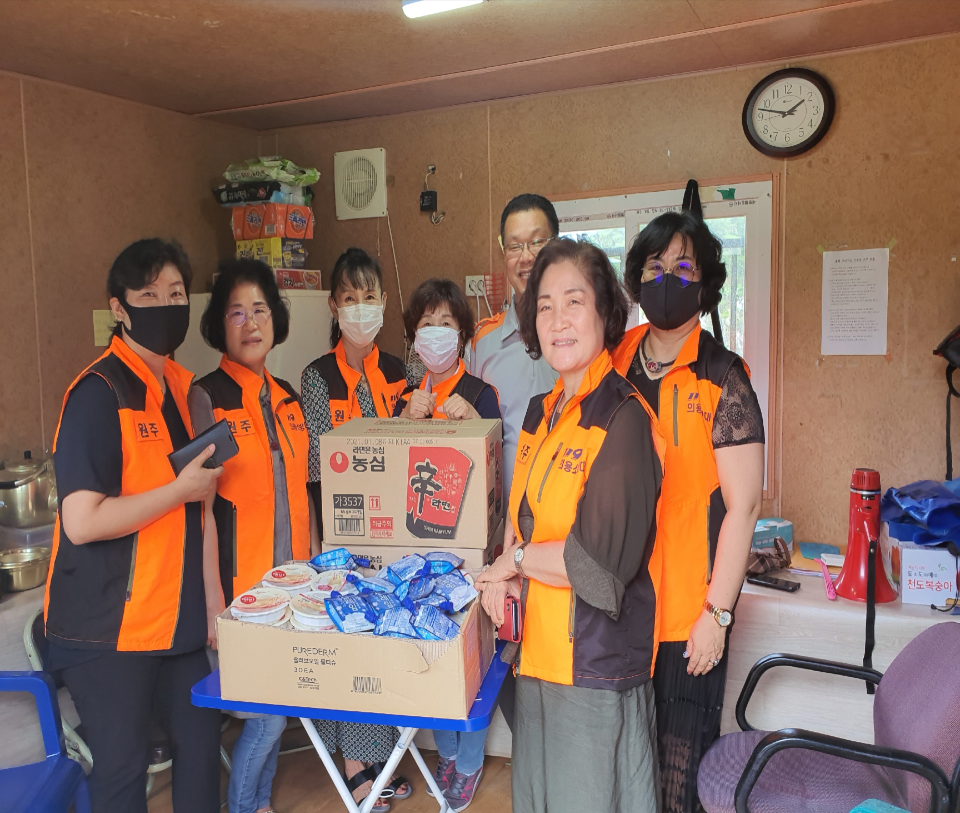시원한 아이스크림과 출출할때 드시라고 햇반 그리고 컵라면을 전달 하였습니다