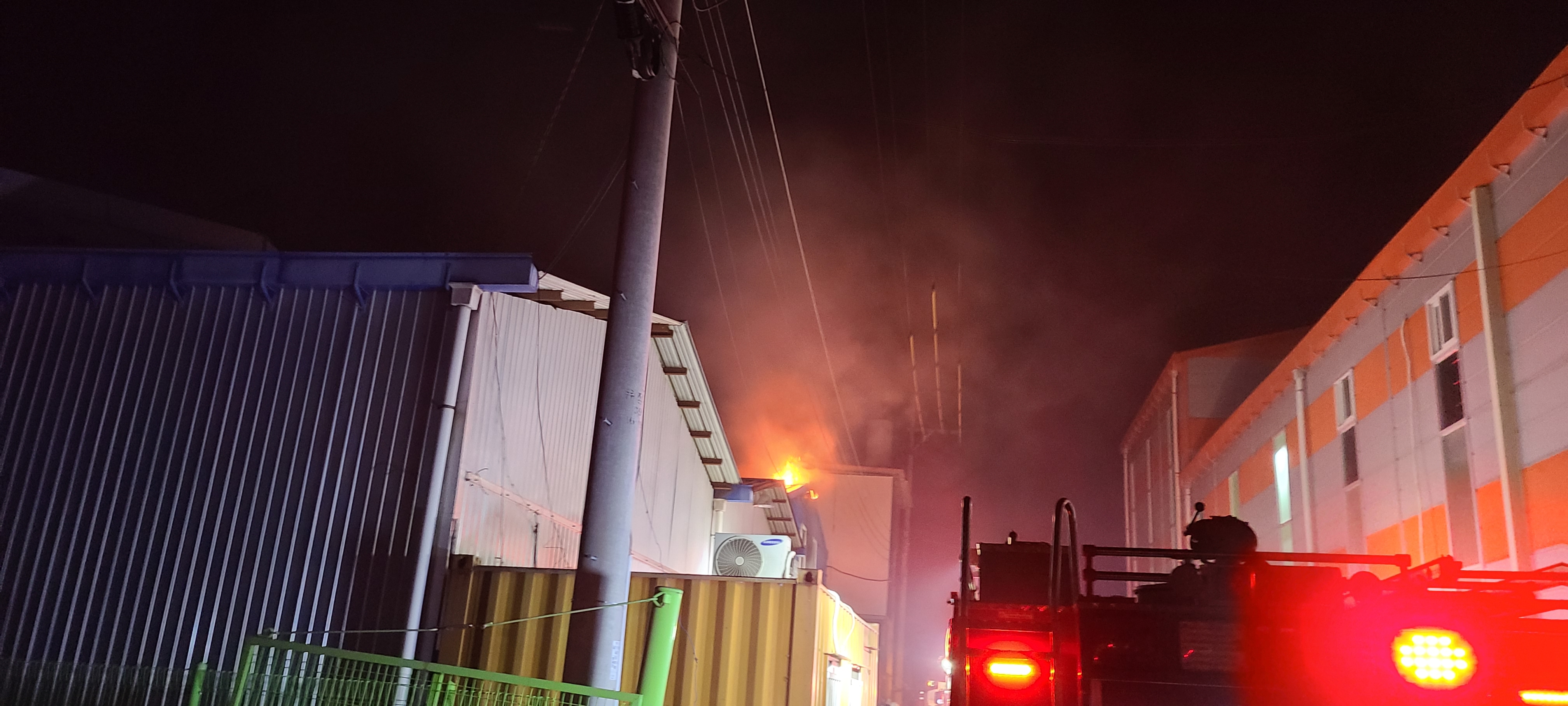 밤 9시30분경 화재발생 출동 하였습니다.