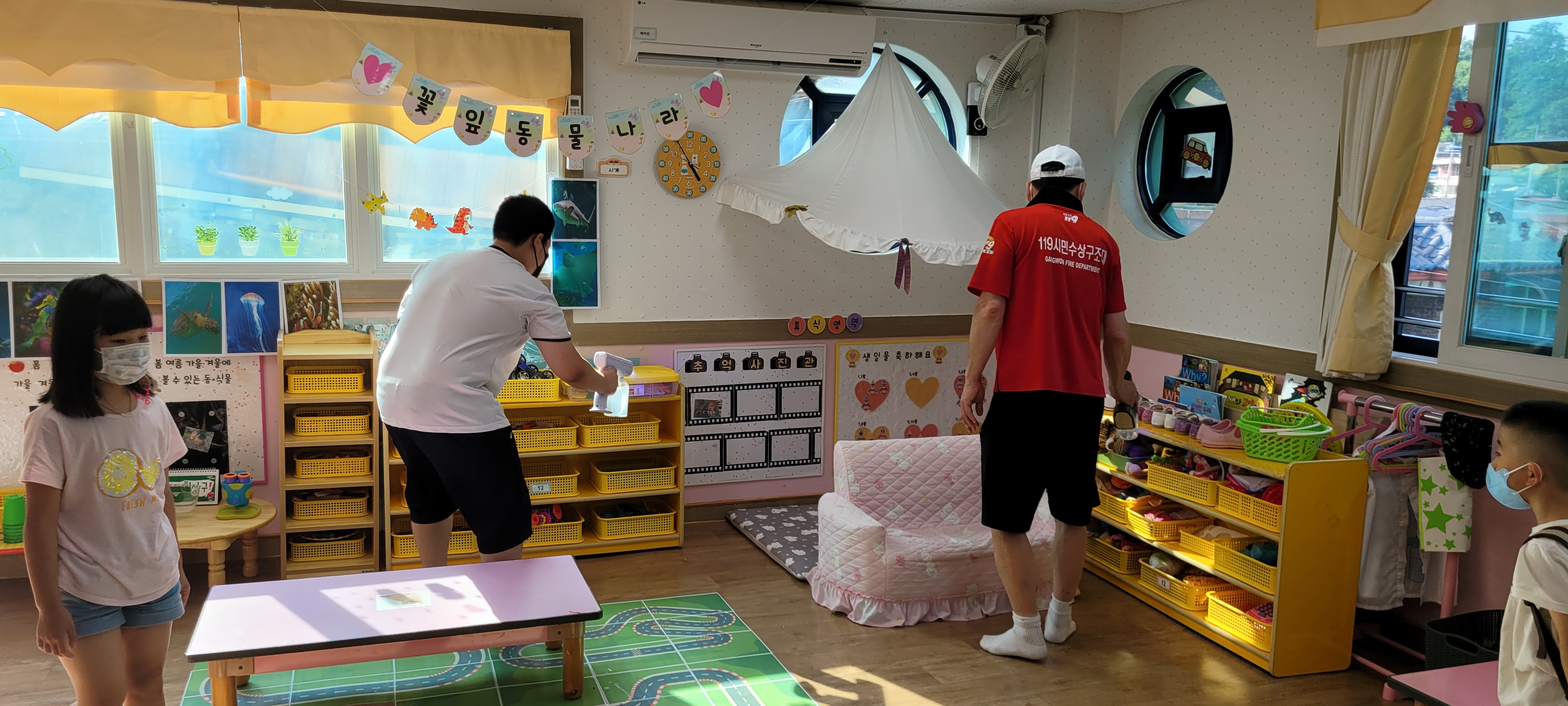 원주남성의용소방대 어린이집 방역활동