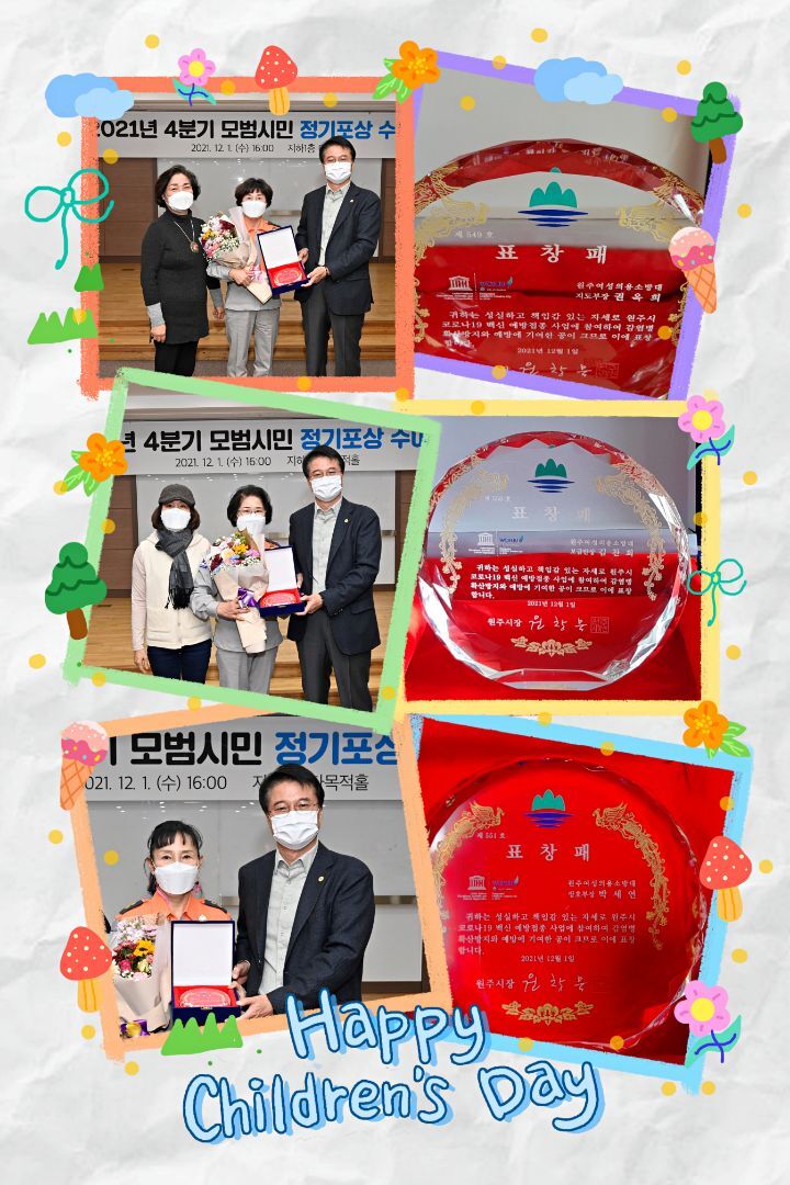 원주시장상을 수상하셨습니다