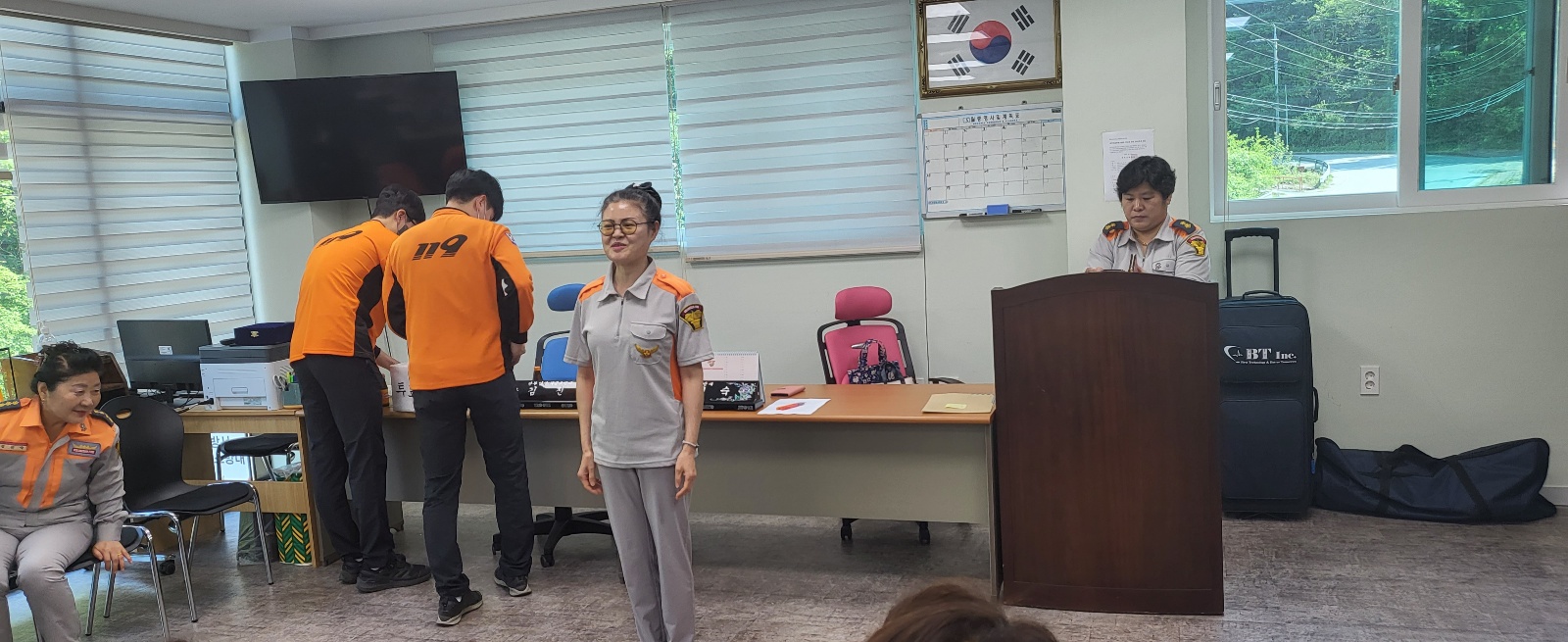 판부여성 의용소방대 부대장 연임 찬반투표에 19명 전원 찬성으로 연임되었습니다.