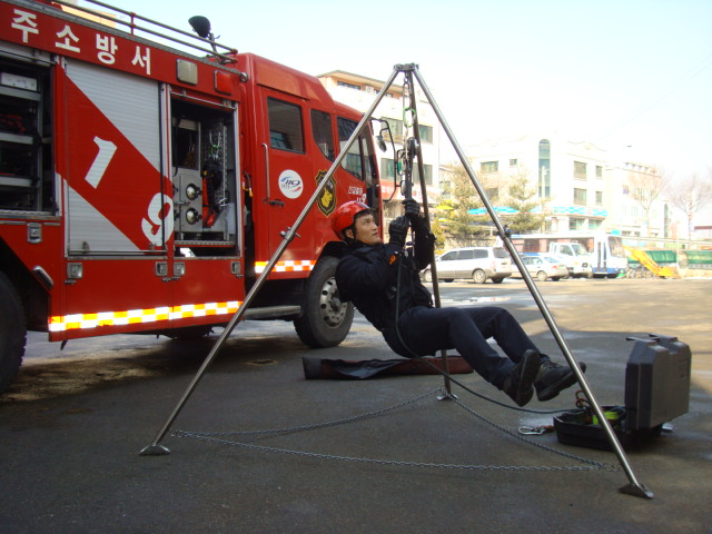 원주소방서(서장 박창진)119구조대는 2011.02.02. 소방서 후정에서 삼각대를 이용한 맨홀구조훈련을 실시하였습니다.