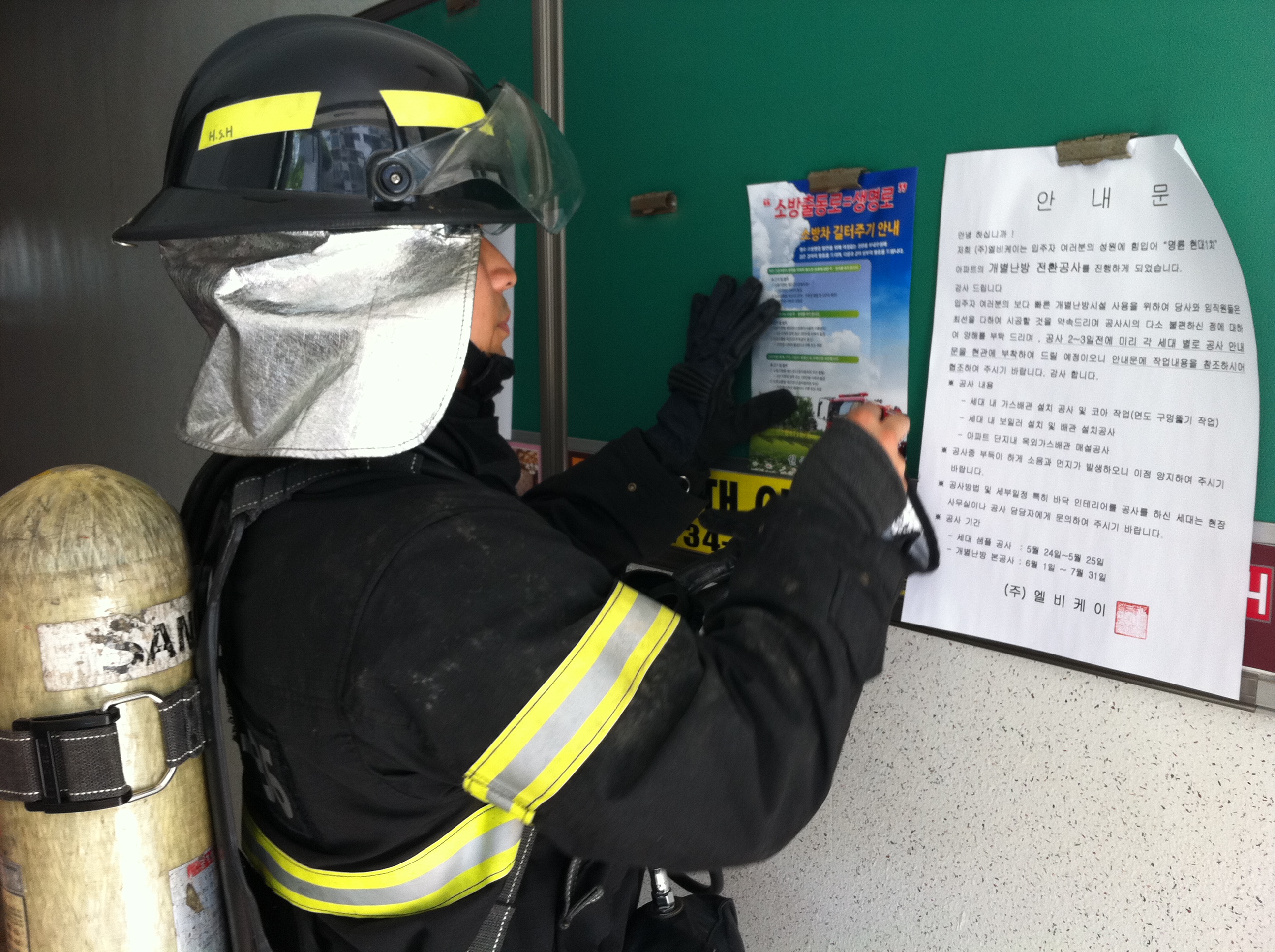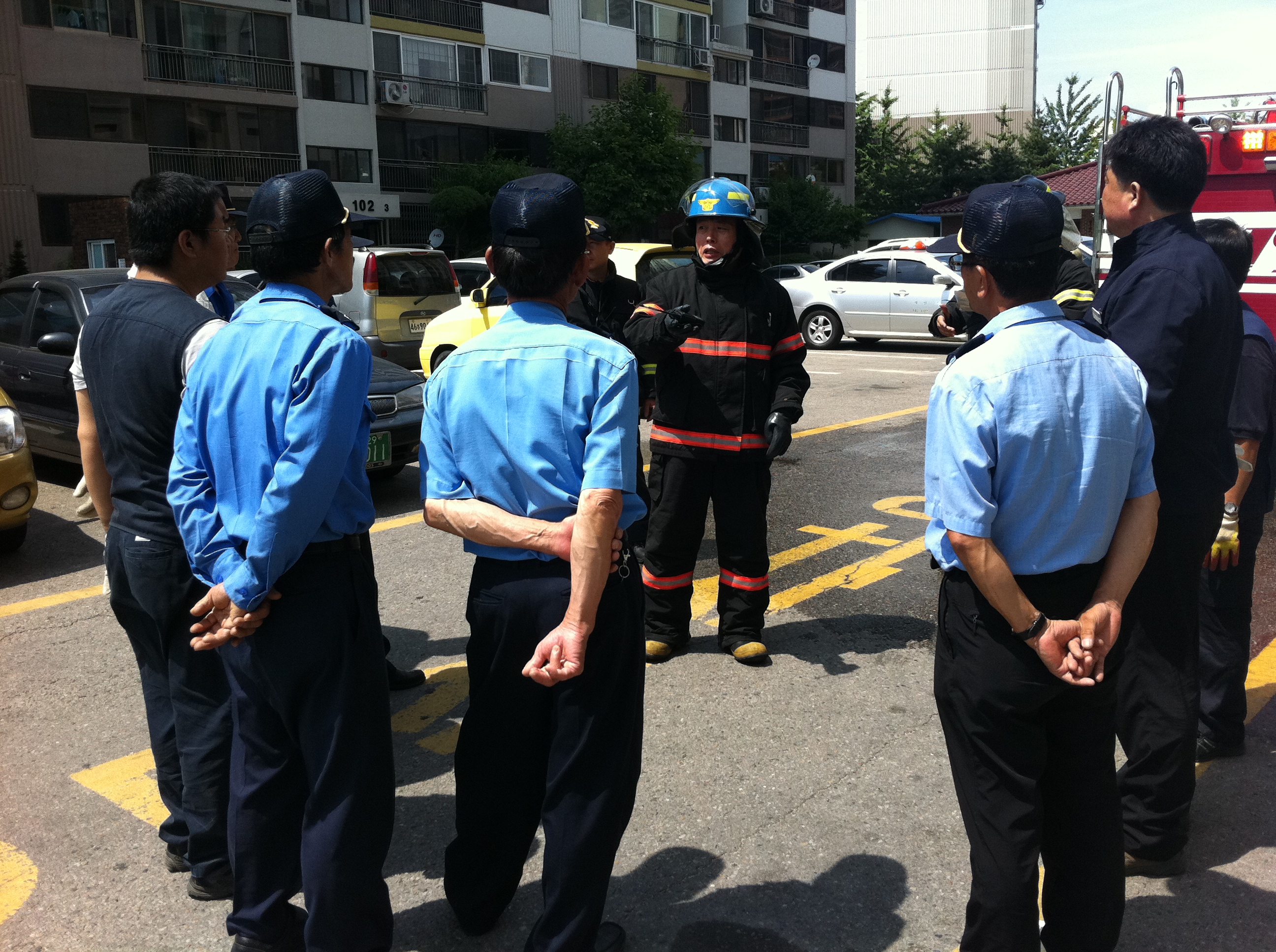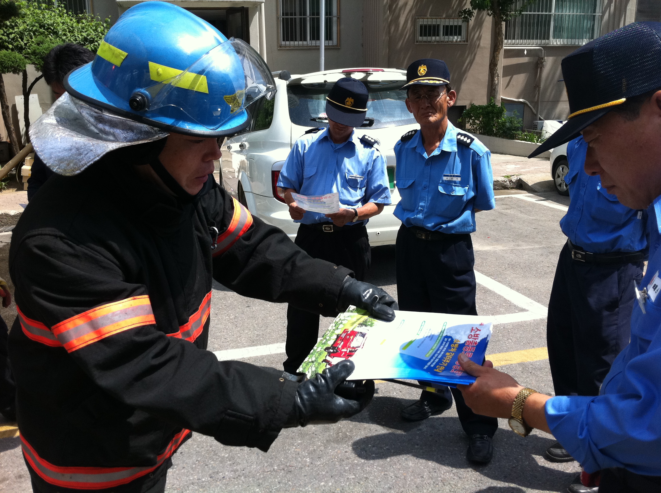 관계자분들과 방수훈련 및 소방안전교육을 실시하여 알찬시간이 되었습니다. 더불어 소방출동로 확보 홍보전단지를 게시판에 부착하여 시민 여러분의 협조가 필요한 일임을 알리는 캠페인도 실시하였습니다.