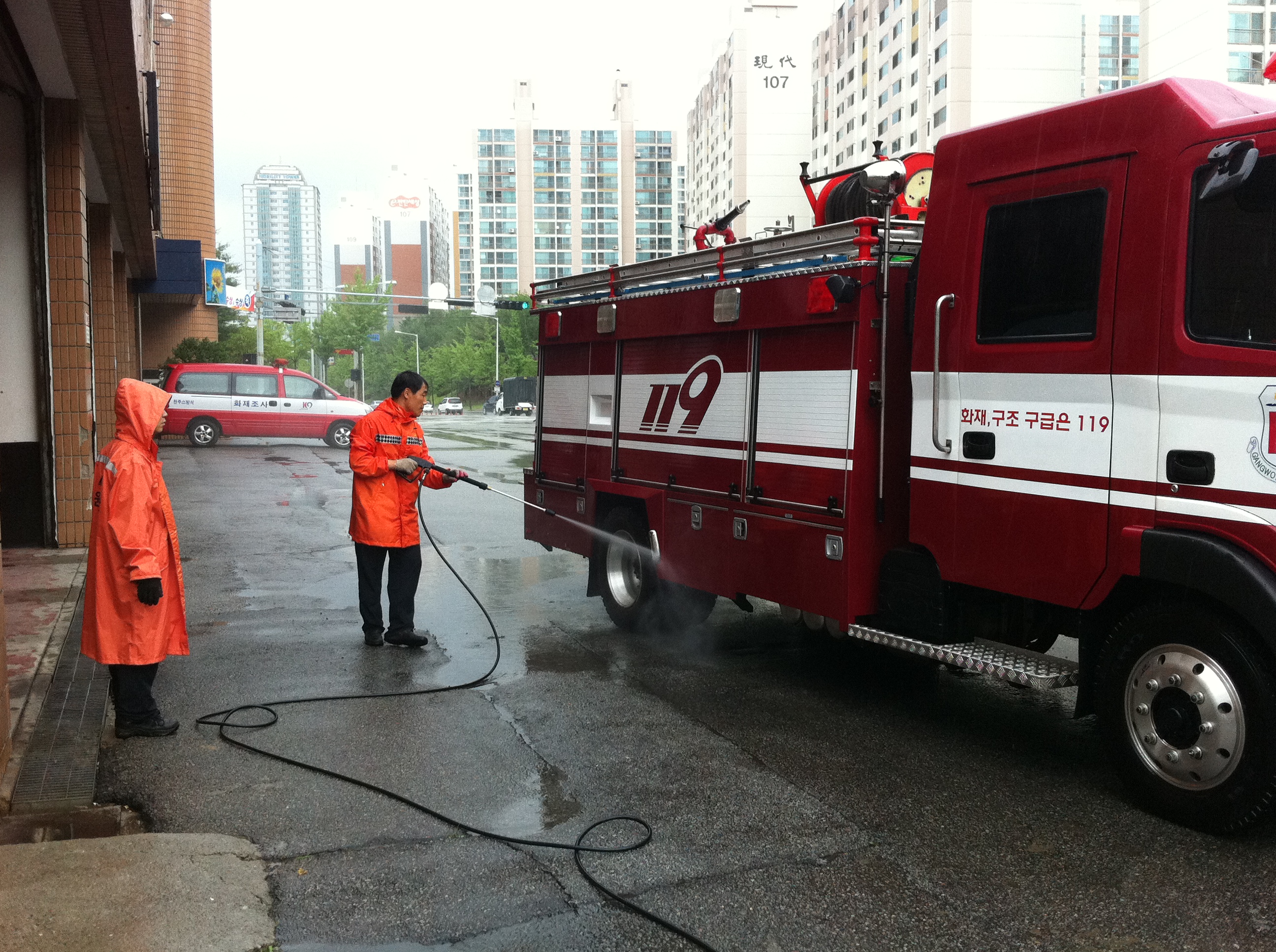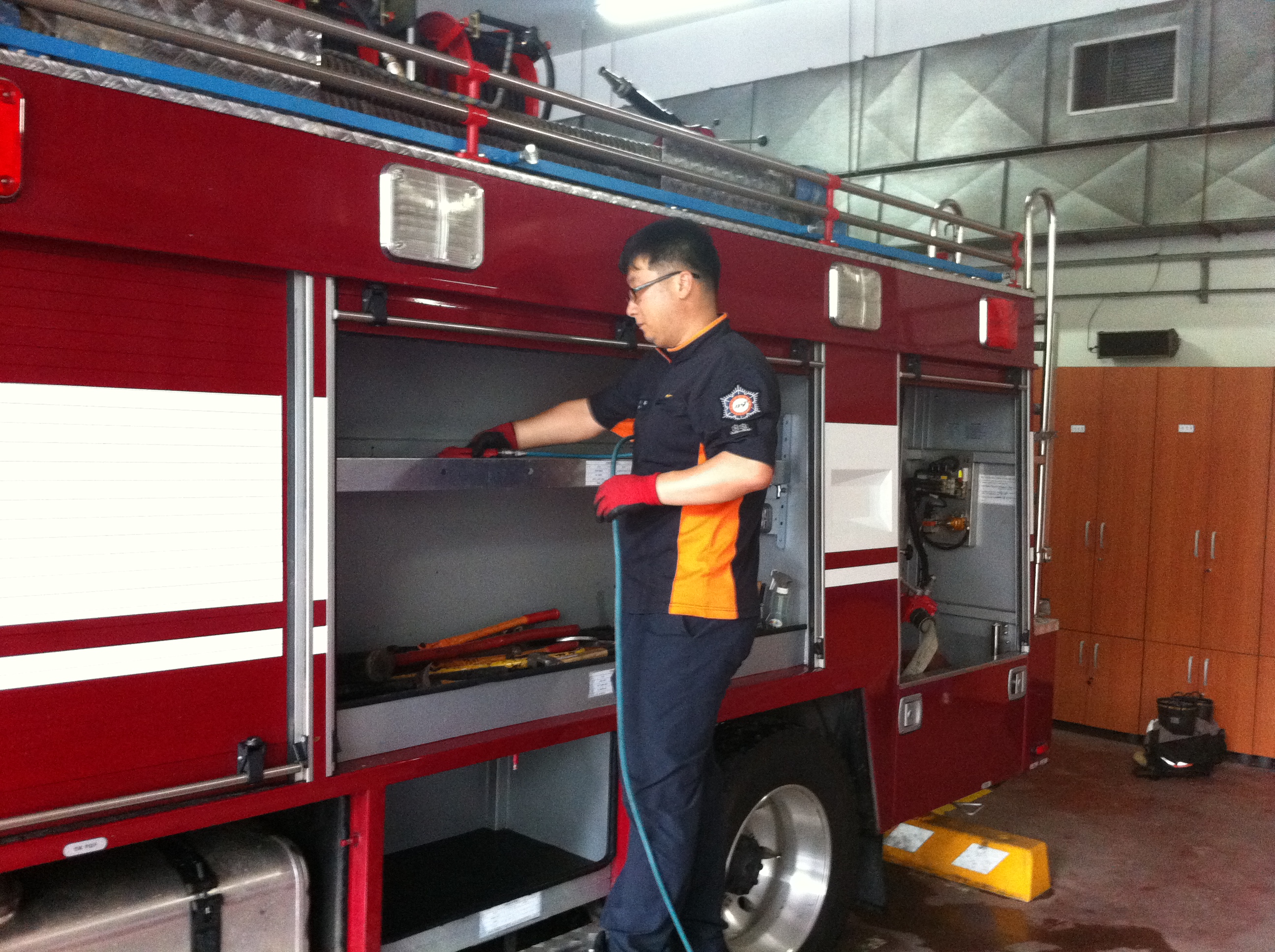 평소에도 '소방차를 내차처럼'이라는 모토아래 차량 정비를 실시하여 혹시 모를 유사시에 대비하며 소방차량과 직원의 안전을 도모하는 소방가족들입니다^^