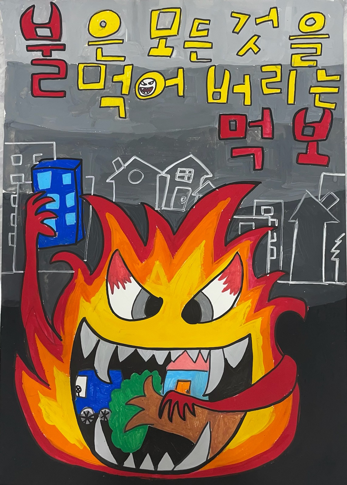□ 심사는 화재예방 주제에 맞게 연관성과 표현력·독창성 등을 중점적으로 평가하였으며, 대상으로 만대초등학교 장윤하 학생, 최우수상에 반곡초등학교 김지아 학생, 우수상에 단관초등학교 김도현 학생과 섬강초등학교 하유나 학생, 장려상에는 반곡초등학교 신주원 학생, 만대초등학교 김노랑 학생, 봉대초등학교 장유나 학생이 선정되었다.