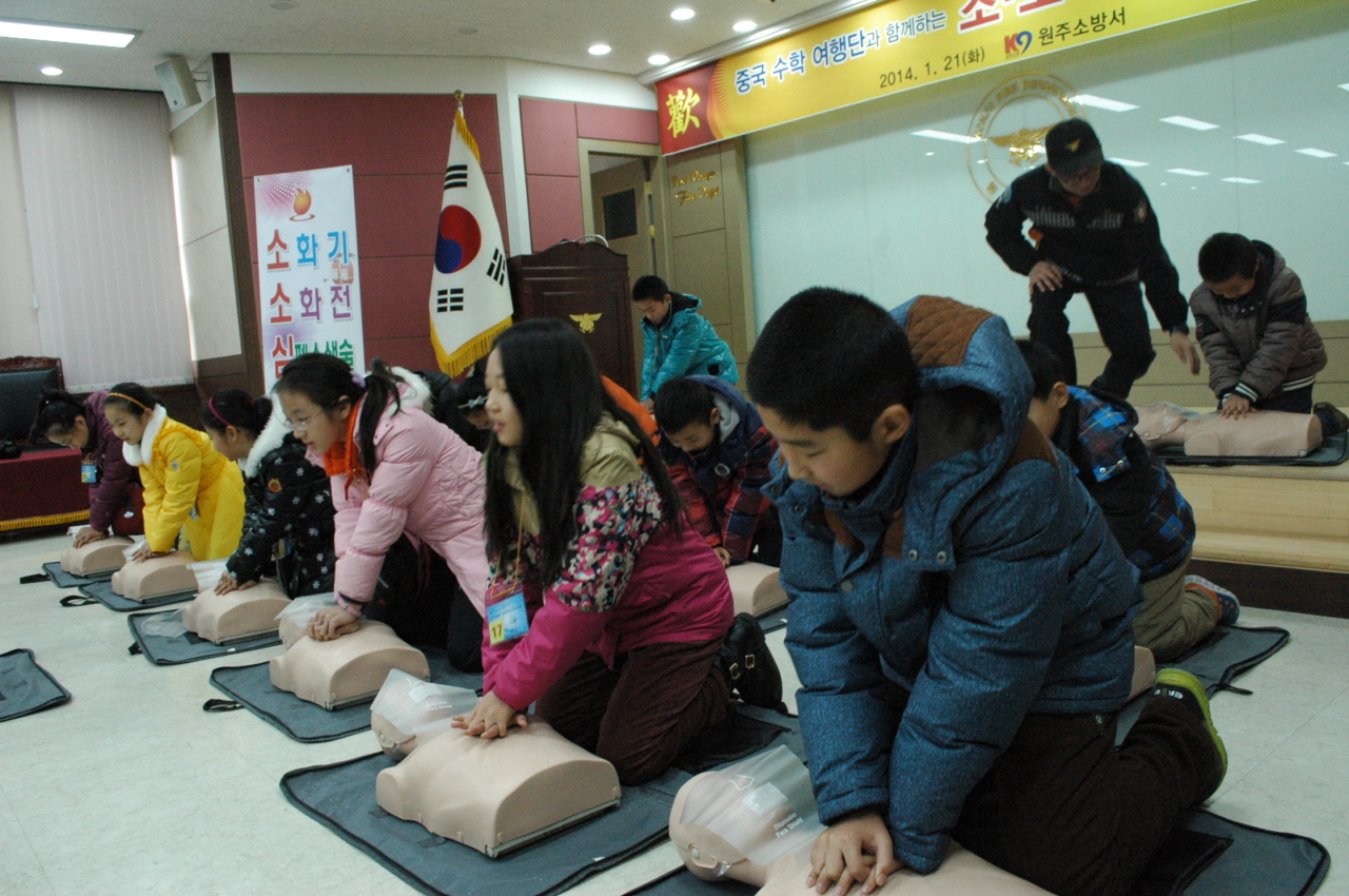 2014년 1월 21일 원주소방서는 중국 강소성 및 하남성에서 온 초등학교 학생들을 대상으로 소,소,심 등 소방안전체험을 실시하였다.