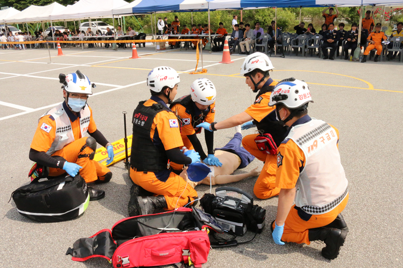 훈련은 영강교회에서 지진 발생으로 다수 사상자 발생을 가정한 메시지 부여를 시작으로 자위소방대 초기소화 및 인명구조·구급활동, 긴급구조통제단 가동, 긴급구조지원기관단체 복구활동 등 유기적인 공조체제 확립해 문제점 분석과 개선방안 등에 관한 사항을 중점을 두고 진행했다.