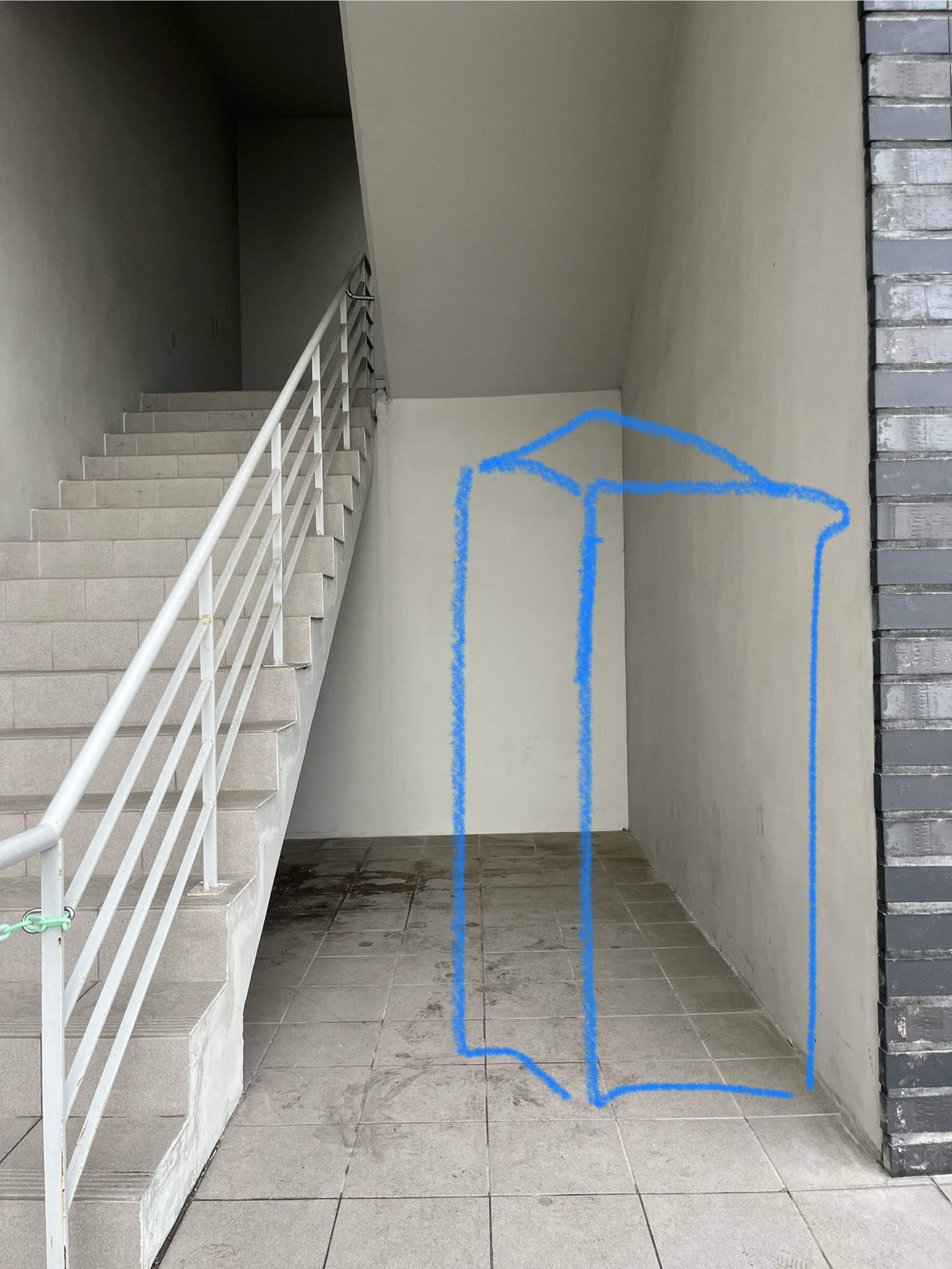 비치 공간은 야외 공간이며, 계단의 제일 아래층이자 통행이 불가(벽으로 둘러 쌓여있음)한 곳입니다.