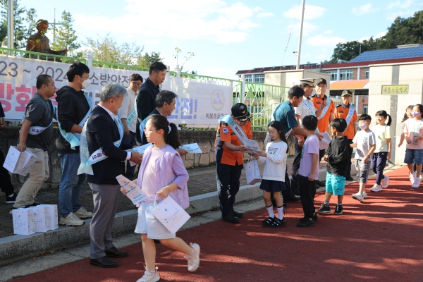 양구소방서(서장 용석진)는 23일 15시 양구 비봉초등학교 앞 교차로에서 어린이 교통안전 현장 캠페인을 실시했다.