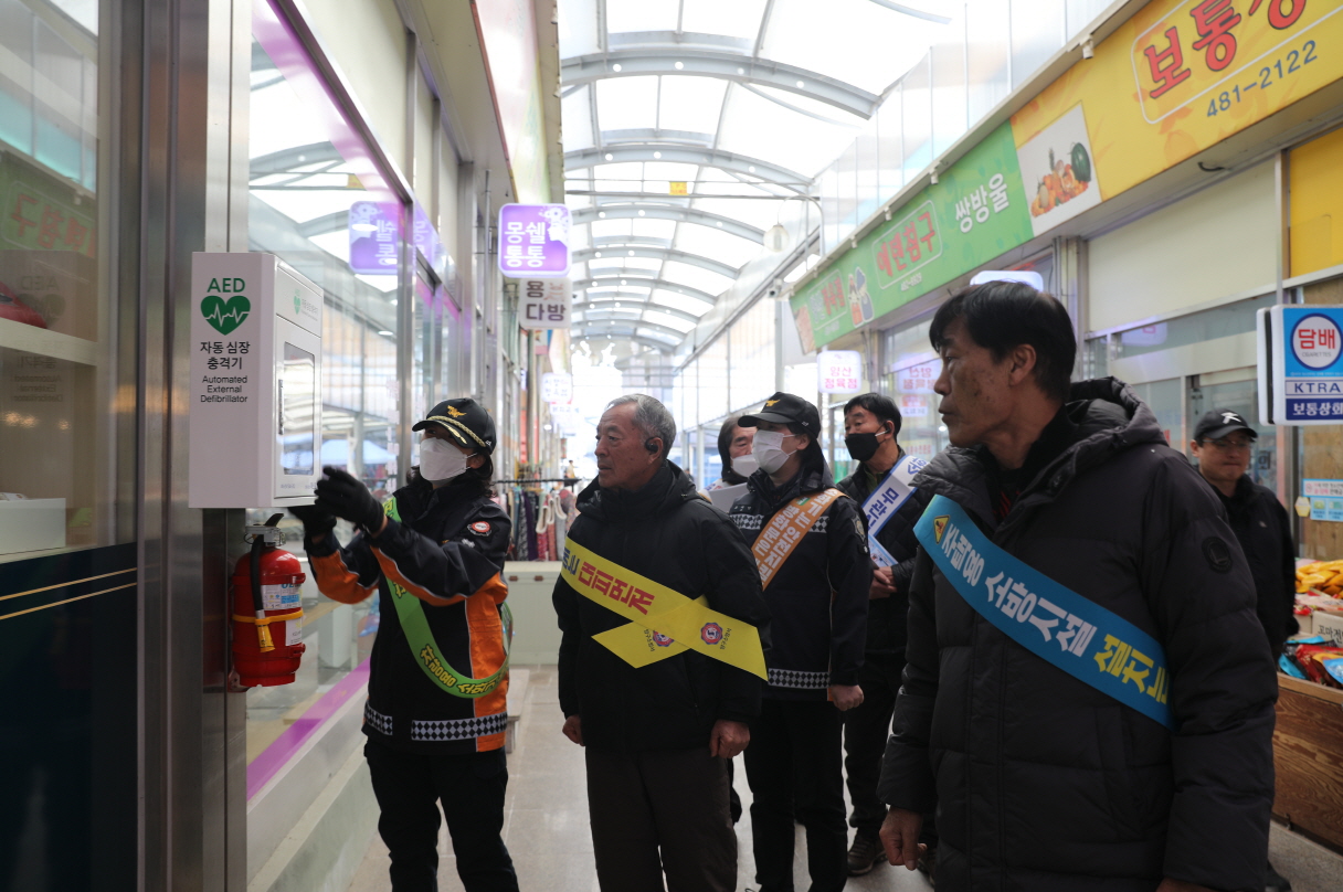 자동제세동기 사용법도 다시 한 번 알려드리고, 소화기 및 용수점검도 하면서 시장관계인에 의한